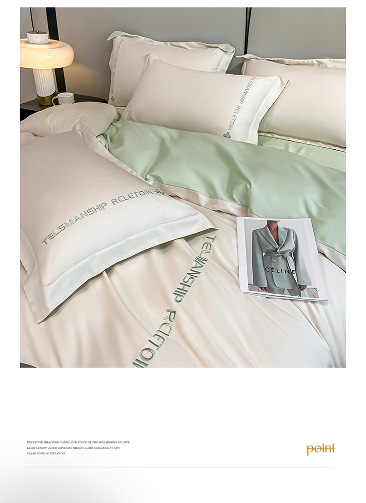 当前位置: 91家纺网 > 商品网购 > 床品套件 > 四件套 > 长绒棉四件套 > 798 2023新款全棉长绒棉轻奢四件套 轻奢-奶昔白+清新绿