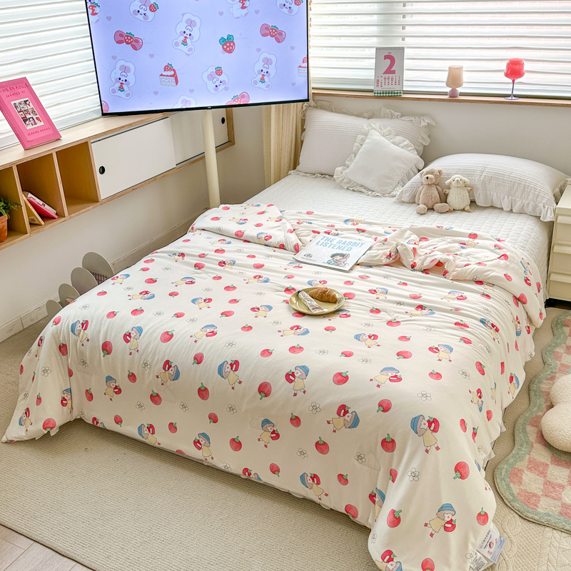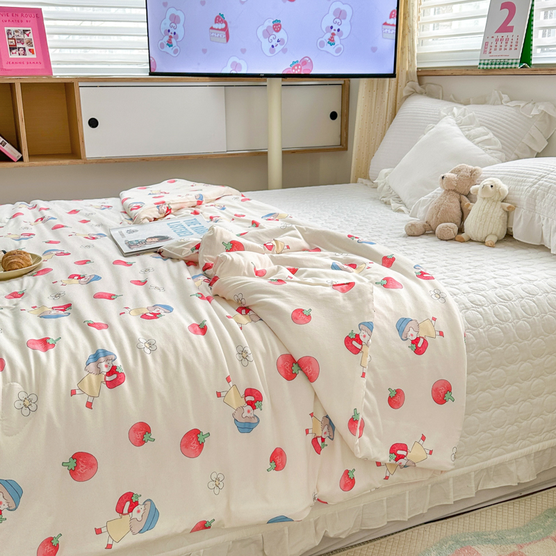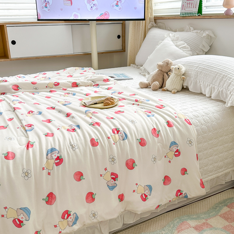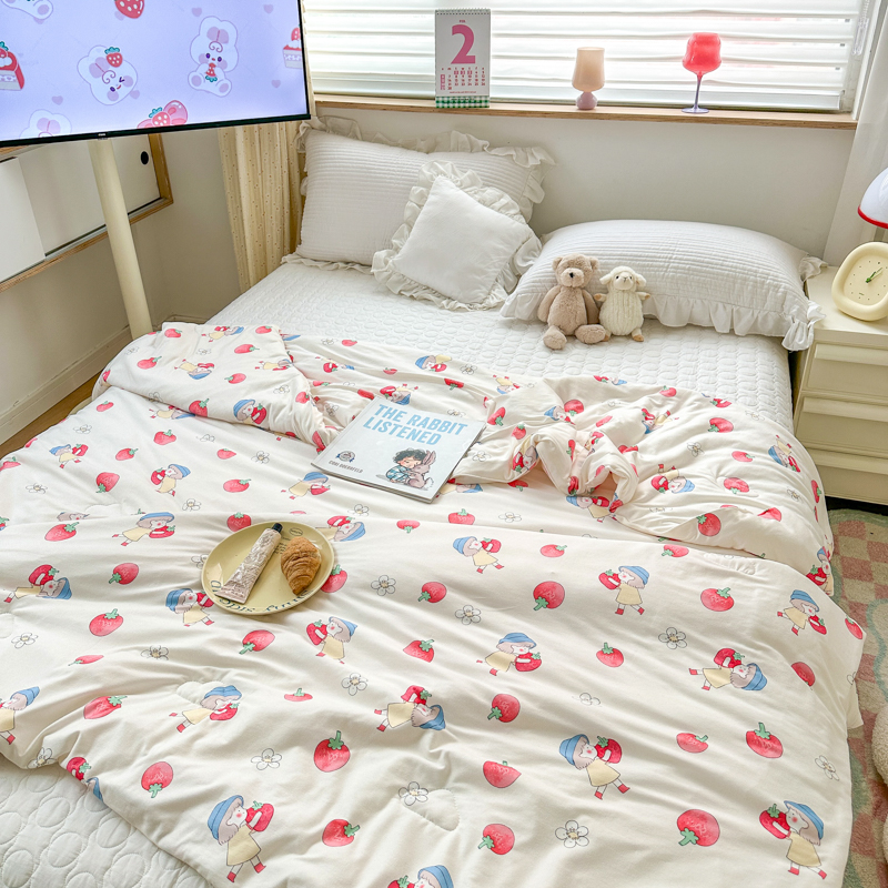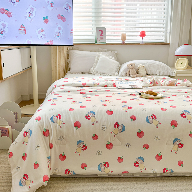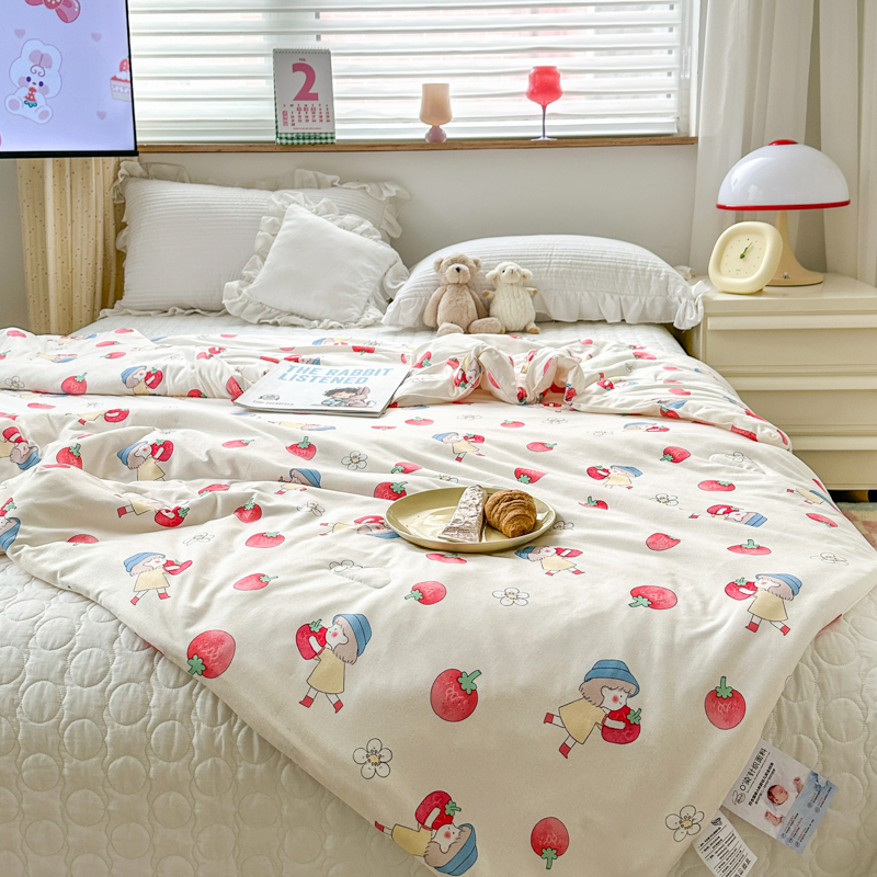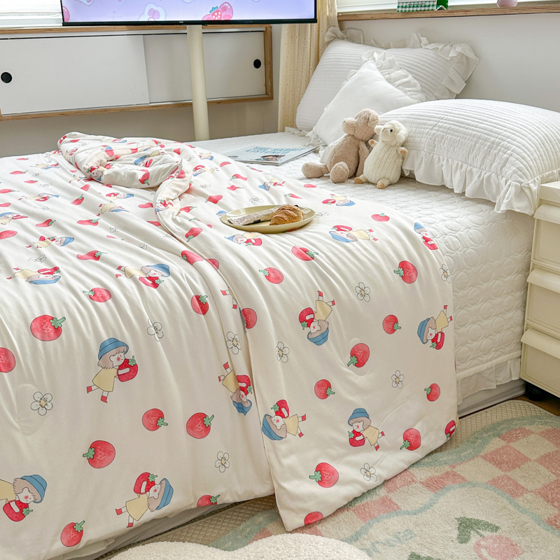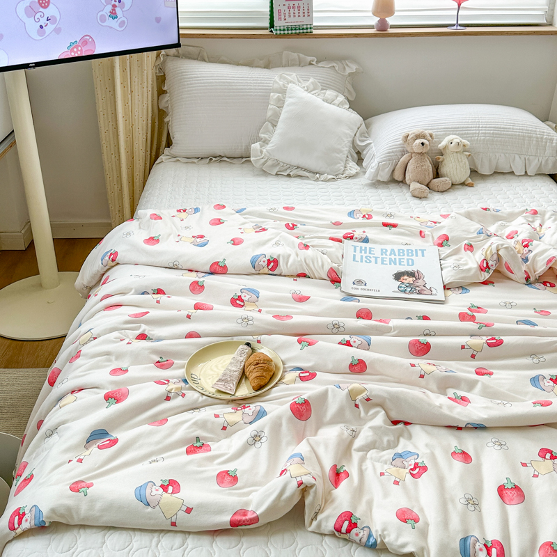 木堇家居 2023新款针织夏被A类大豆针织棉夏被 草莓女孩