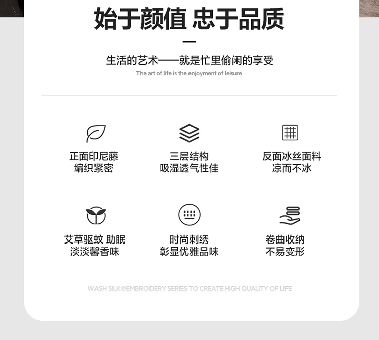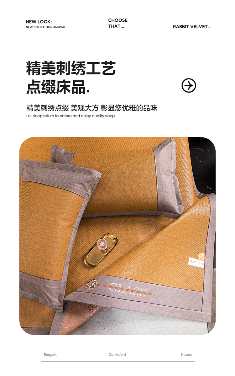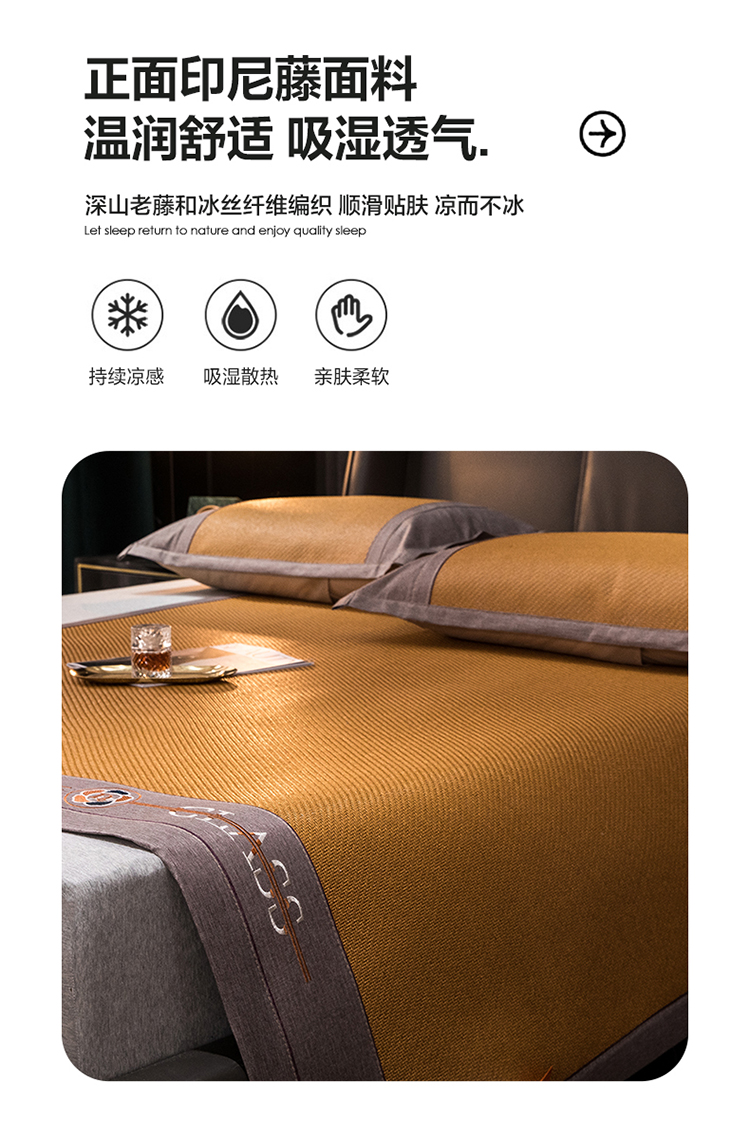 (总)伊被源 2023新款凉感冰藤刺绣软席-冷酷,深邃灰,伽罗色,古绿色,咖啡色