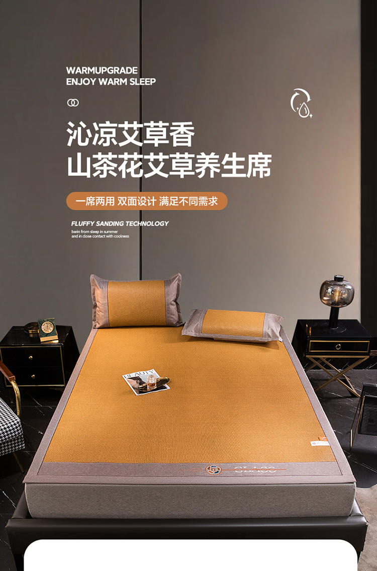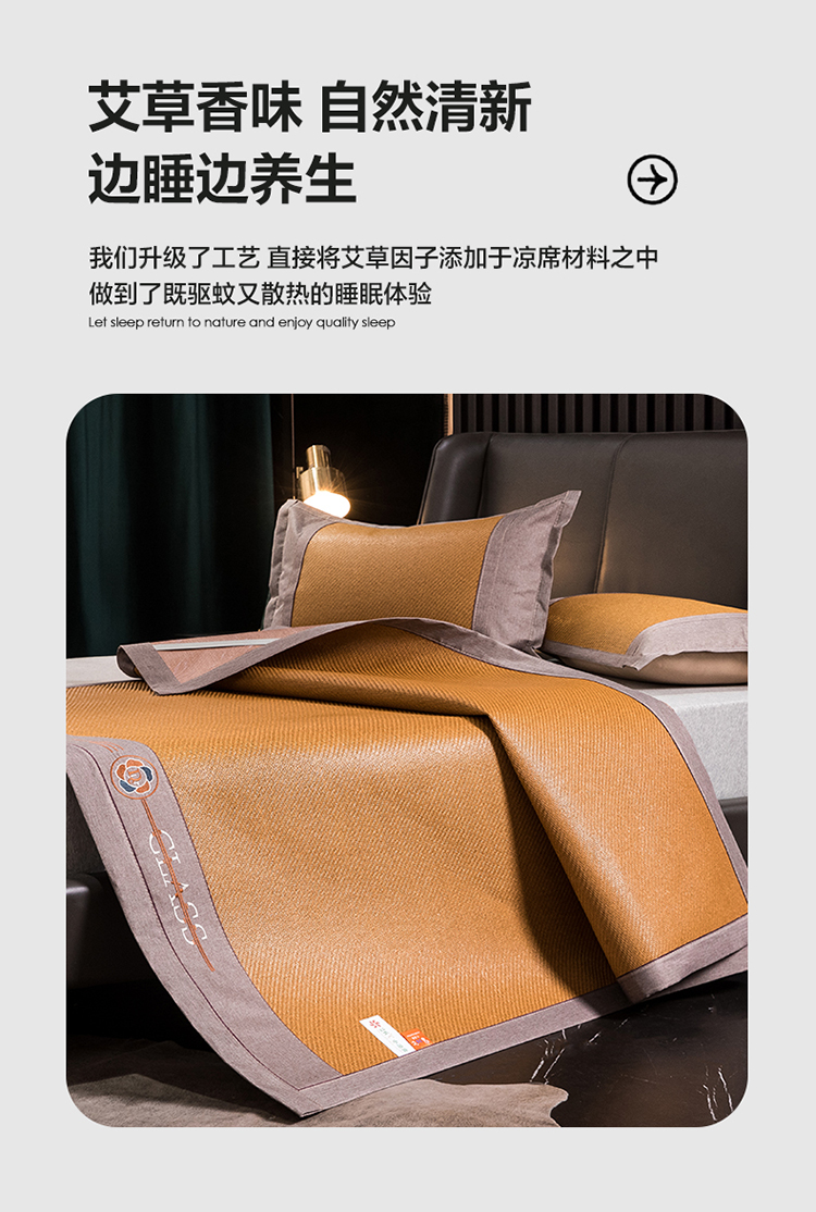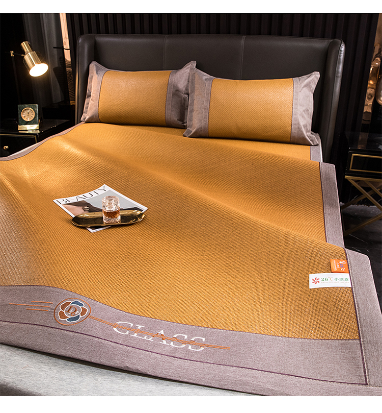 伊被源 2023新款山茶刺绣艾草凉席系列 山茶刺绣艾草玉米黄