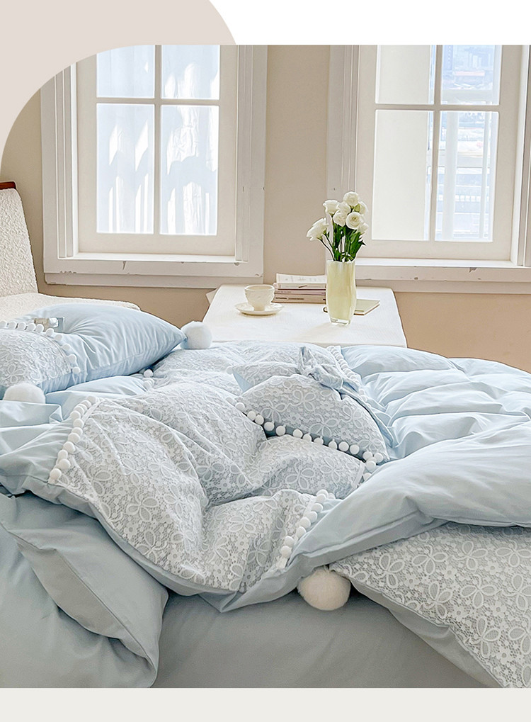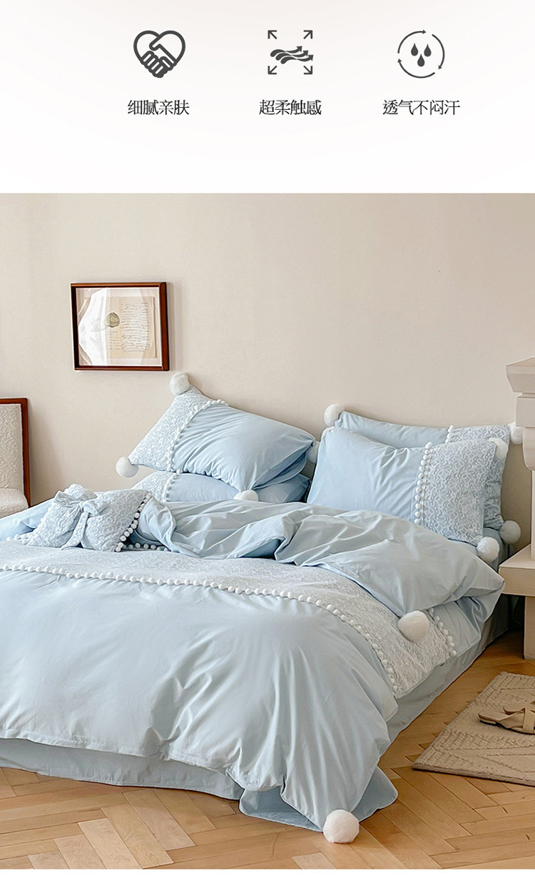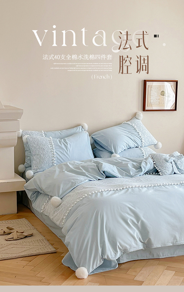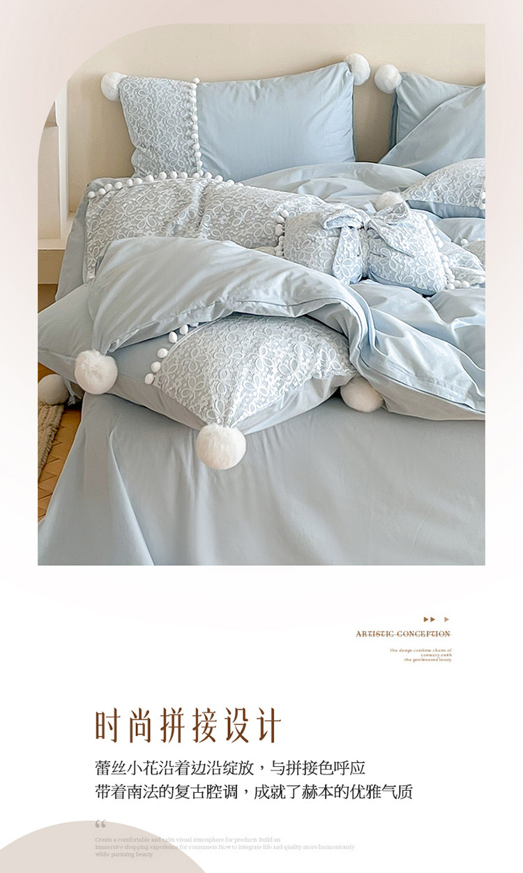 (总)婳庭家居 2025新款60s全棉纯棉MIU系少女法式蕾丝四件套,miu系少女