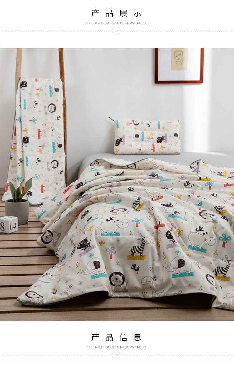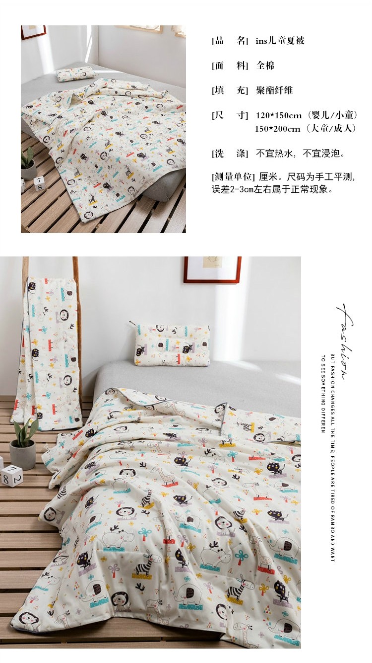 商品名称:十九色2024新款ins全棉儿童夏被 动物世界