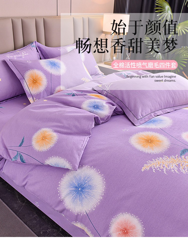 商品名称:橘姿 2023升级喷气全棉磨毛四件套纯棉四件套加厚直播 流行格调
