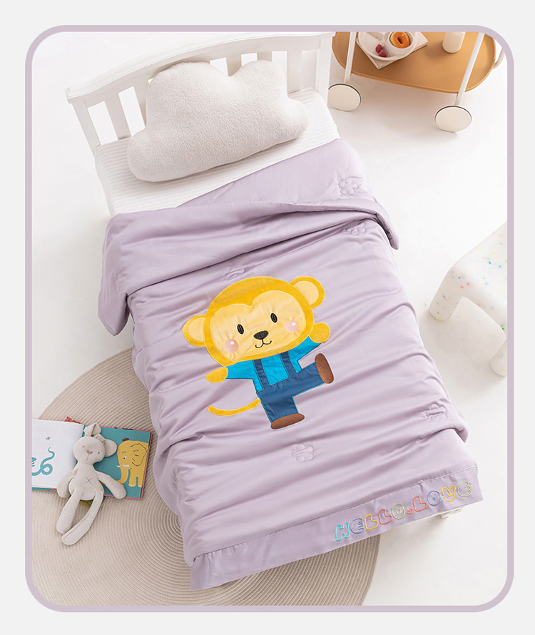 喜多兔儿童家纺 2023年新款小欢喜莫代尔天丝空调被 灰色跳跳小猴