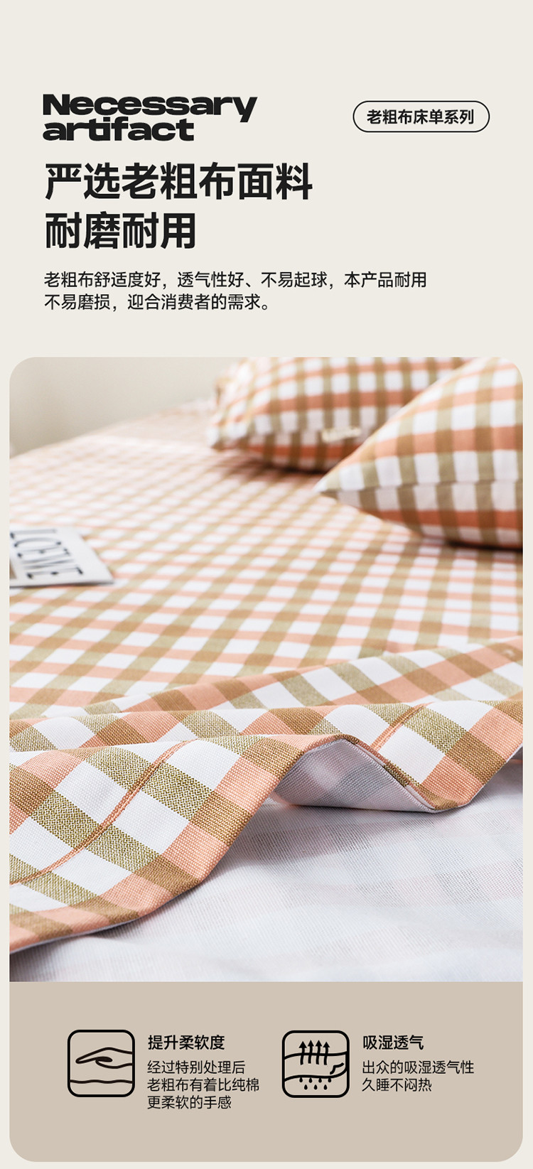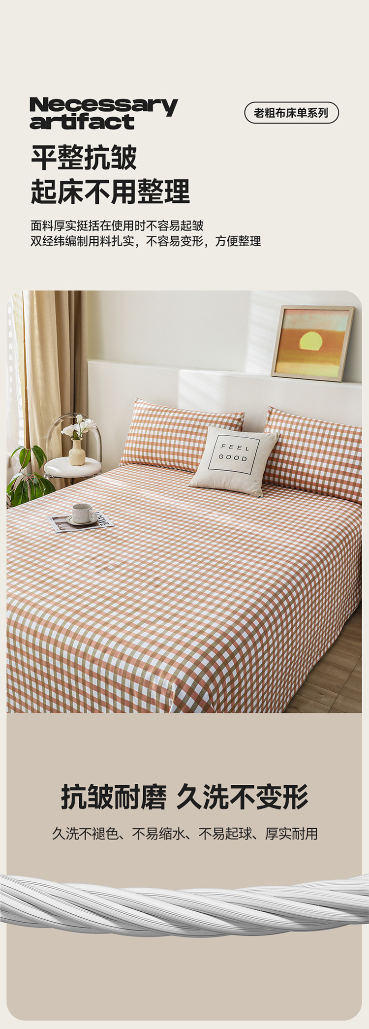 商品名称:航途席业 2023新款 全棉老粗布床单 谷耐