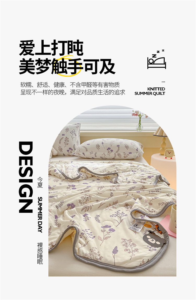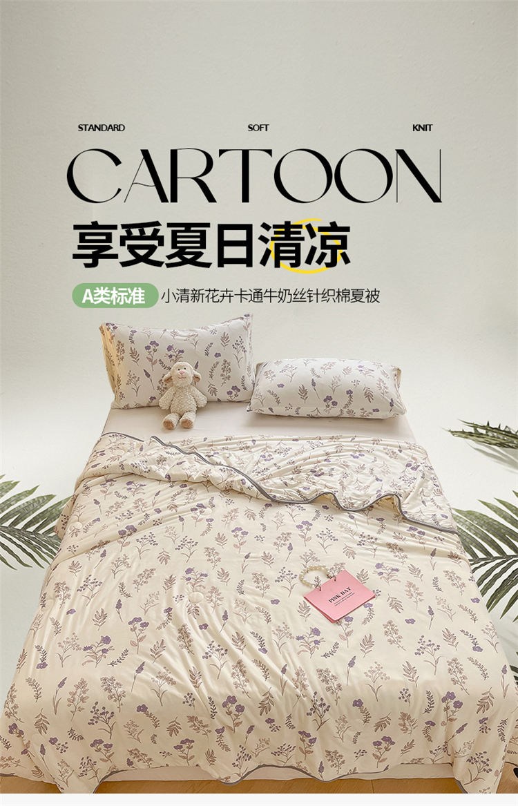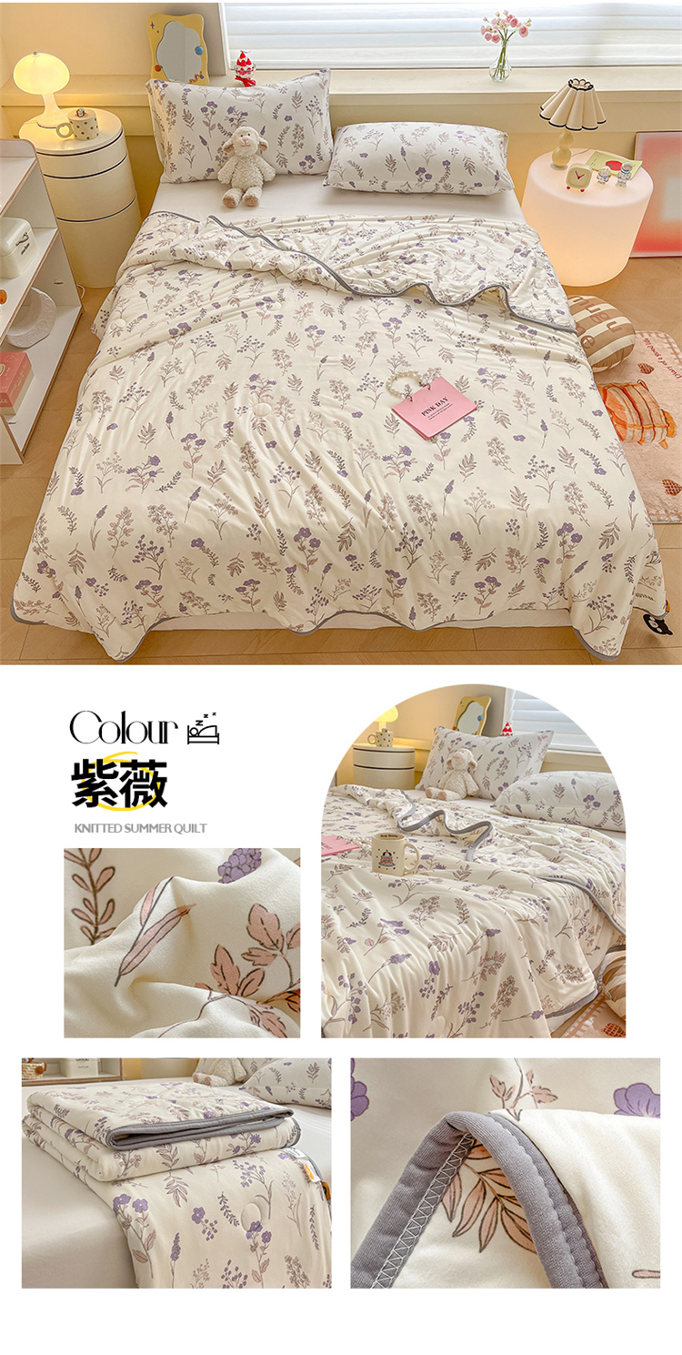 商品名称:桃子 2023新款A类ins高品质小清新花卉卡通牛奶丝针织棉夏被 针织棉夏被-紫薇