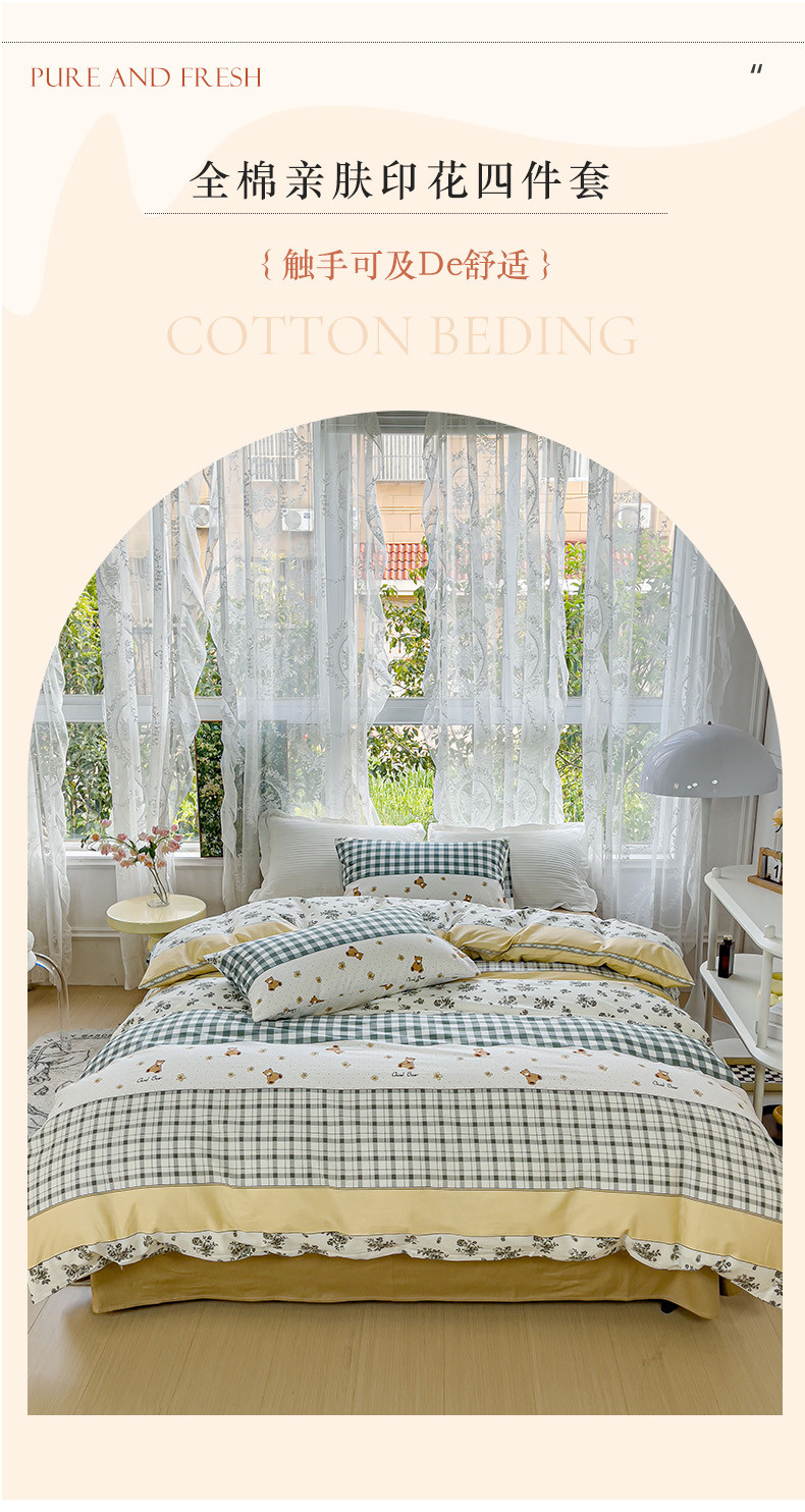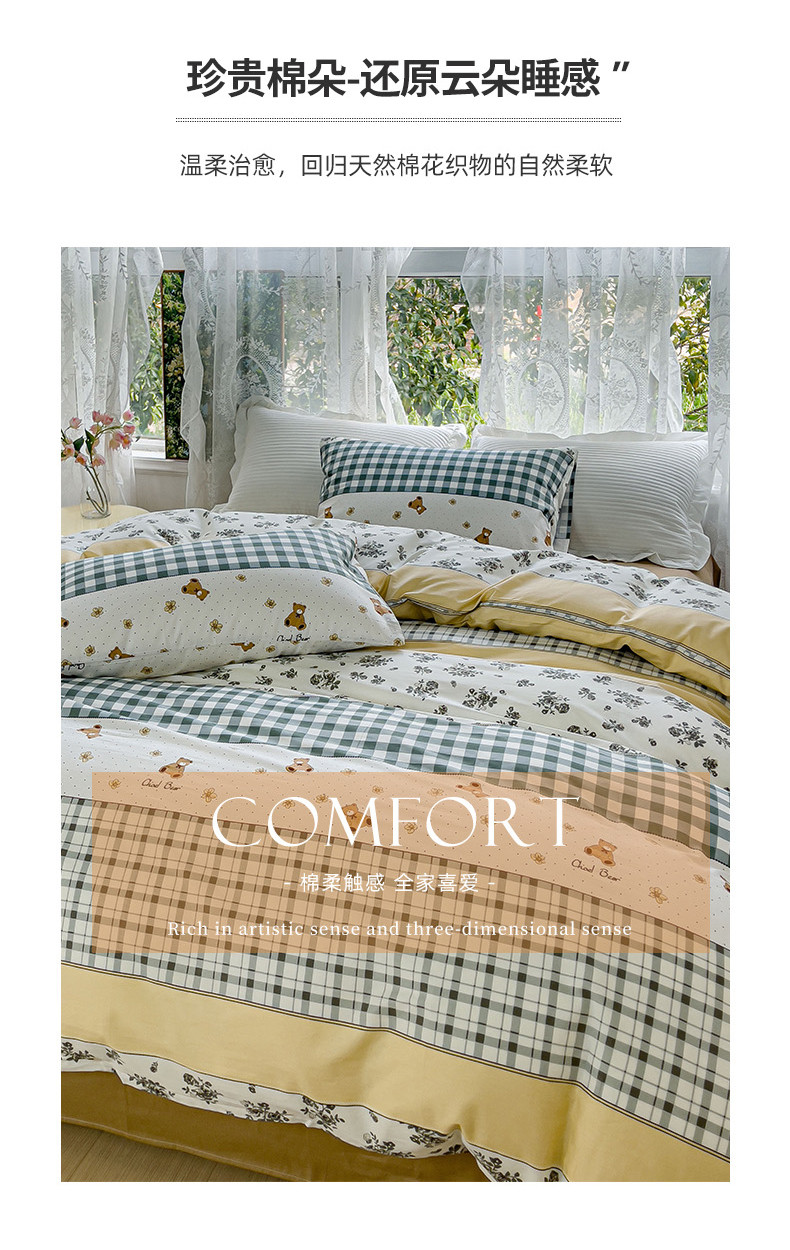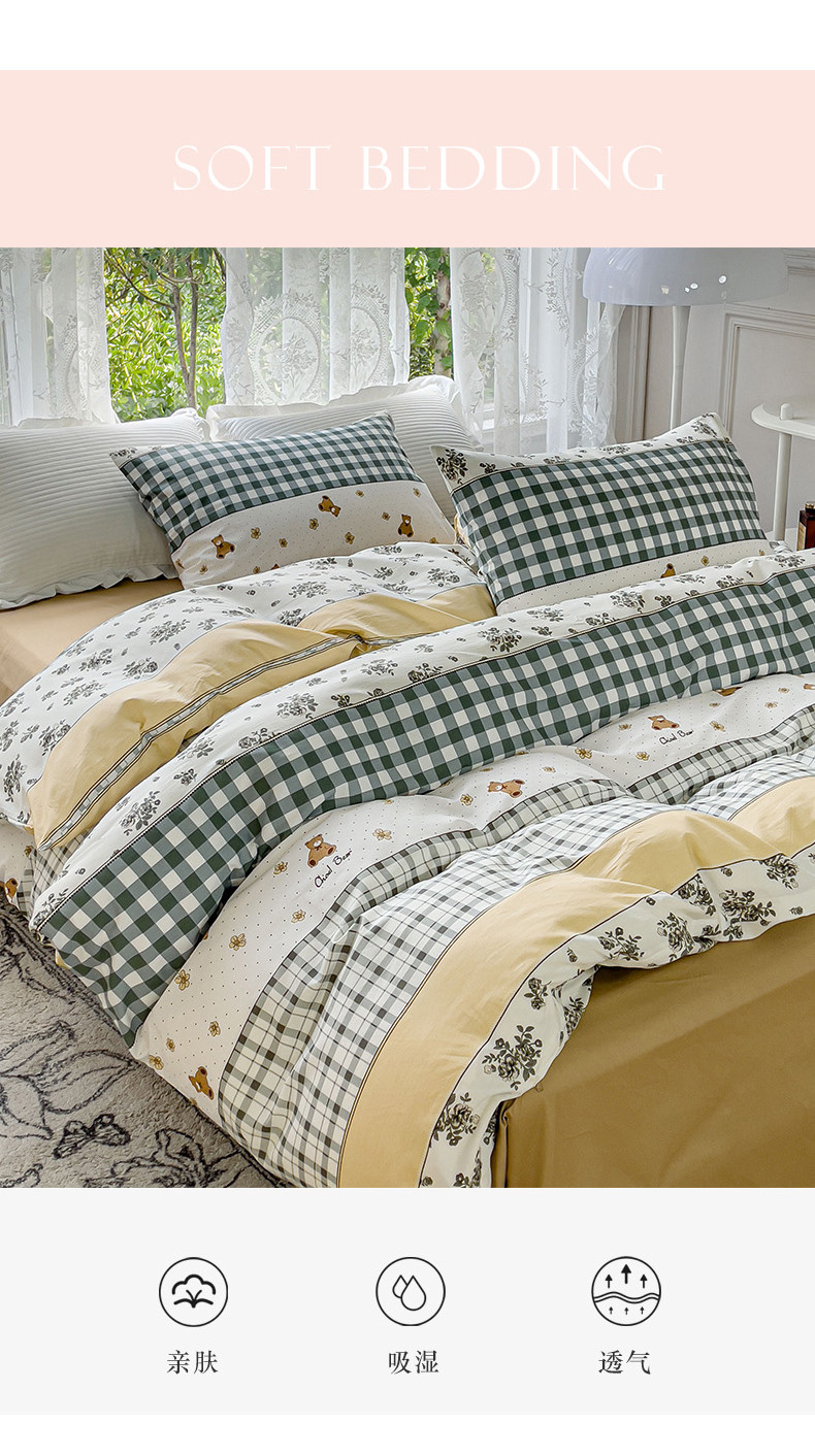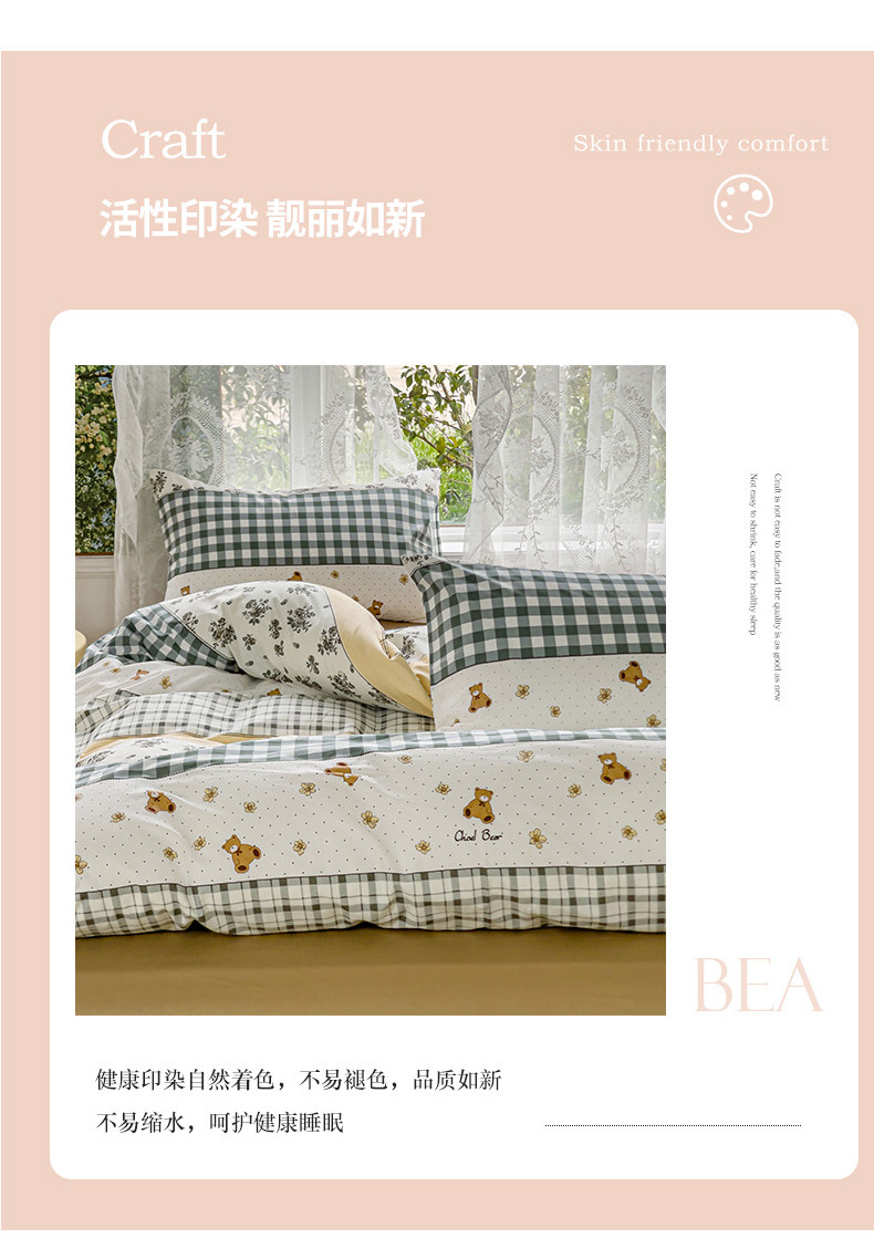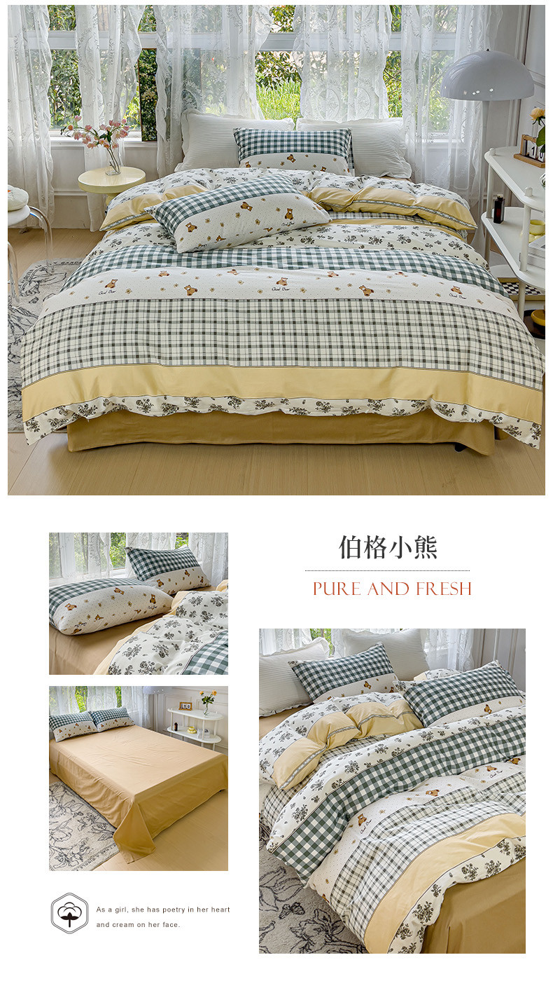 感遇家纺 2023新款全棉印花四件套 伯格小熊