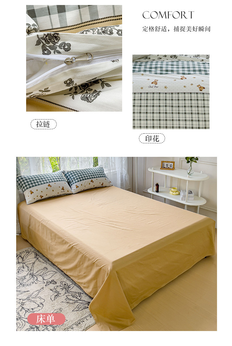 (总)感遇家纺 2022新款全棉印花四件套,格子草莓,花晓,滑板小熊,萌宠,时光,兔宝宝,熊先生