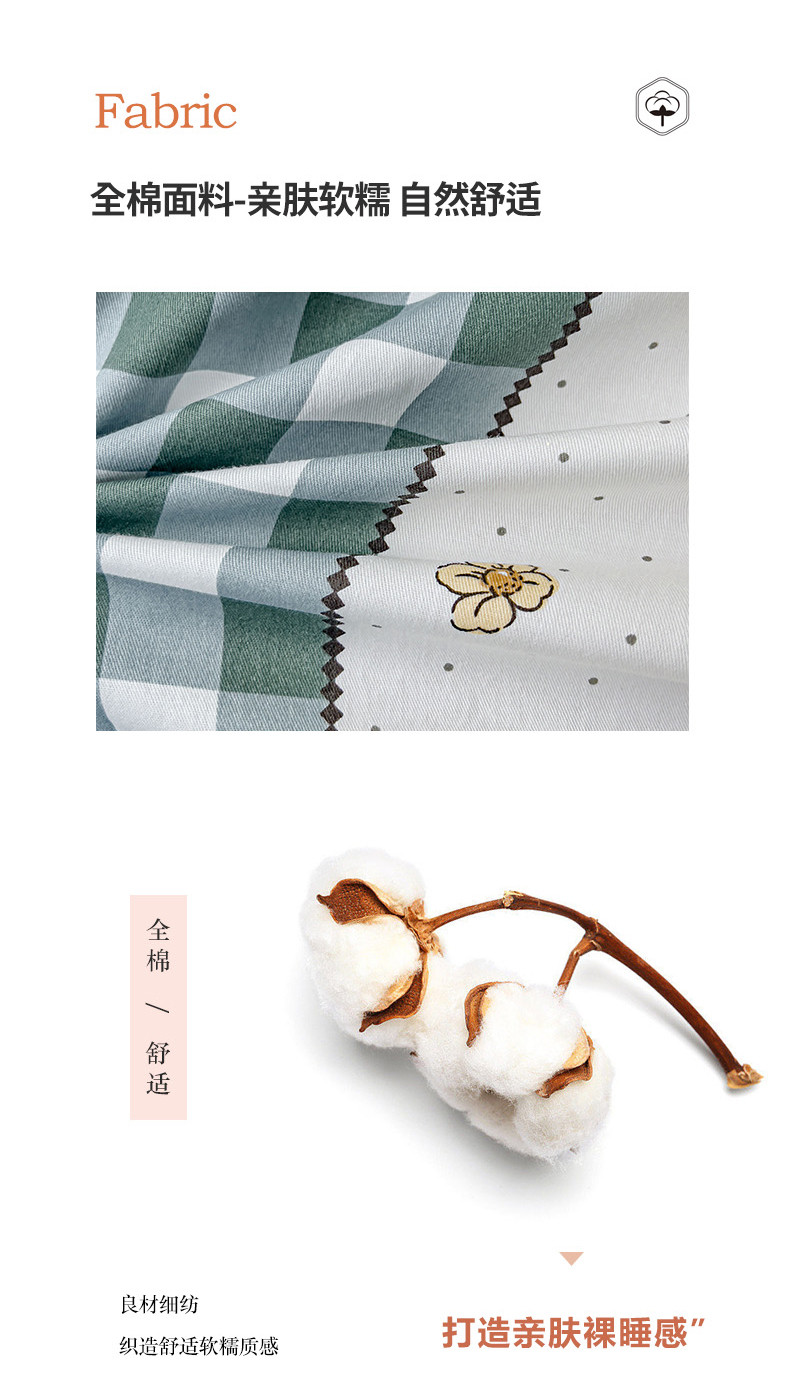 (总)感遇家纺 2022新款全棉印花四件套,格子小花,黑格恐龙,蓝色心情,浅暖