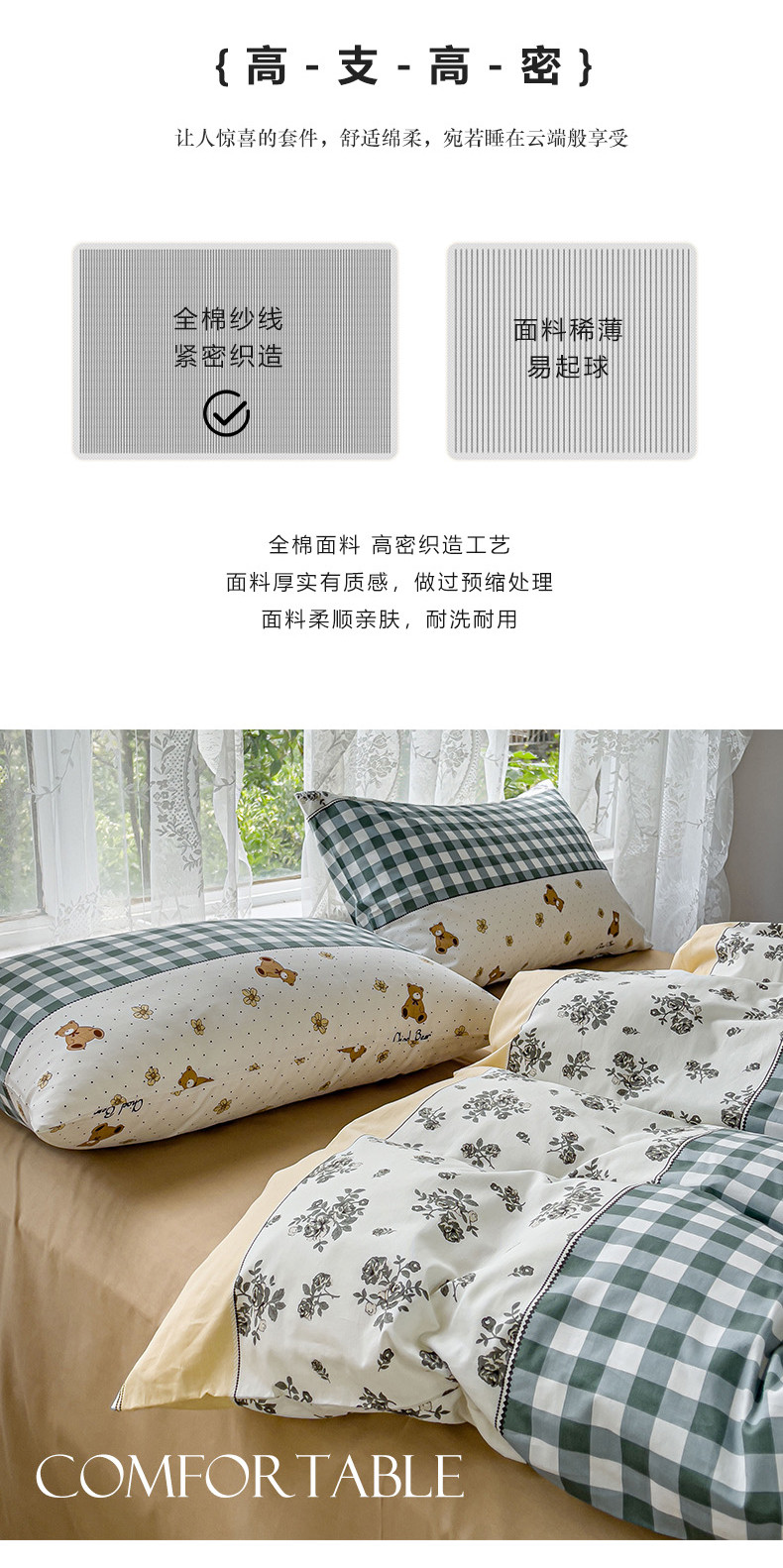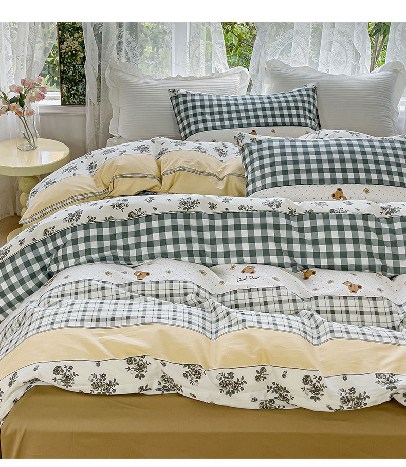 (总)感遇家纺 2025新款小清新甜系全棉四件套,百丽兔,波点小女孩,点点小狗,复古樱桃,格子草莓,格子樱桃,花间牧歌,灰条猫咪,奶绿,宁夏,森林小熊猫,甜心波点