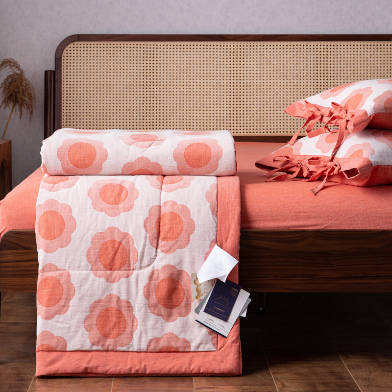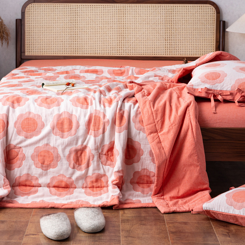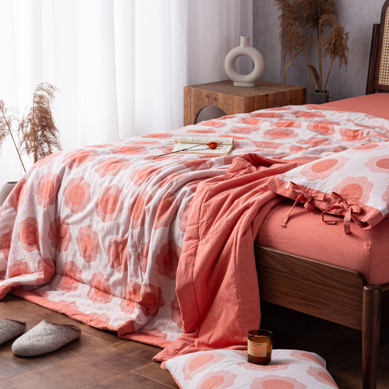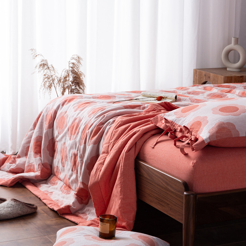 商品名称:安莱生活 2023新款 太阳花夏被四件套及单独夏被 太阳花-嫩粉