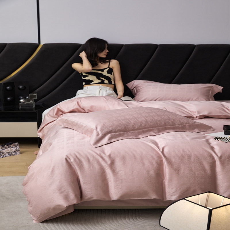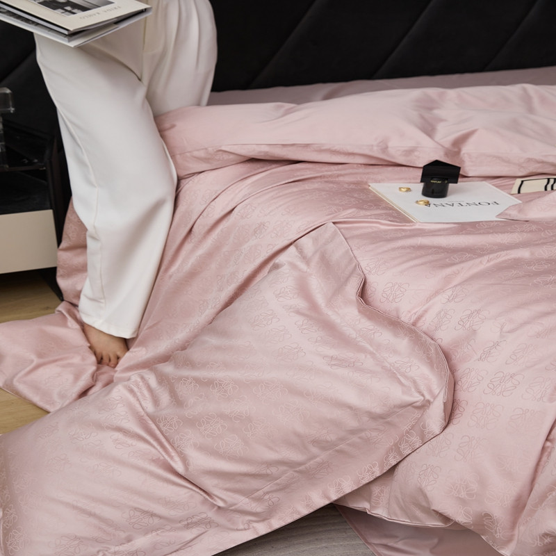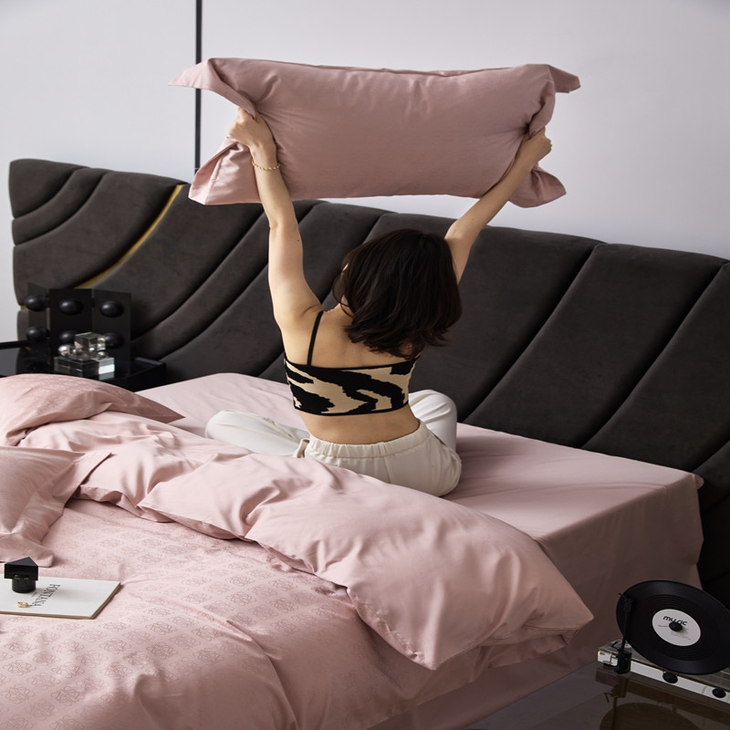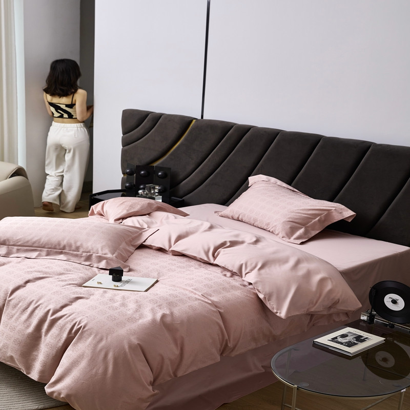 商品名称:安莱生活 2023新款 100S纯棉提花四件套 岚烟水月-粉