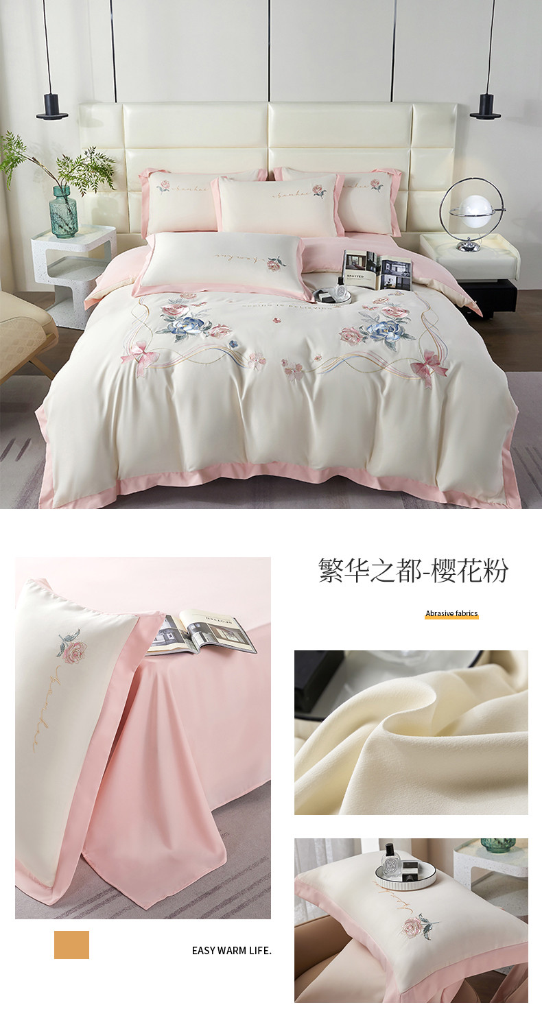 (总)凯艾玲 2023新款法式浪漫系列磨毛细斜纹刺绣四件套,法式浪漫-奶昔白,法式浪漫-蔷薇紫,法式浪漫-天空蓝,法式浪漫-樱花粉