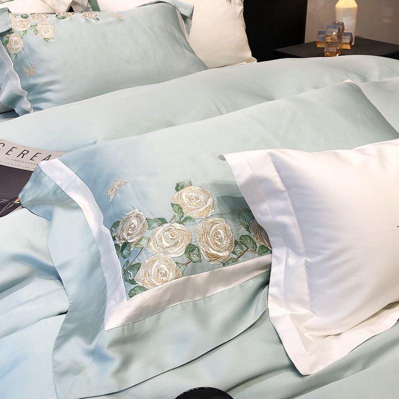 商品名称:太古汇 2023新款兰精天丝玫瑰庄园系列四件套 玫瑰庄园-蓝绿
