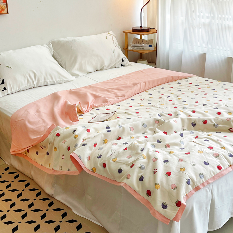蓝庭云小棉天丝棉凉感小清新夏凉被卡通可机洗亲肤空调被双人被 翠果果,翠果果