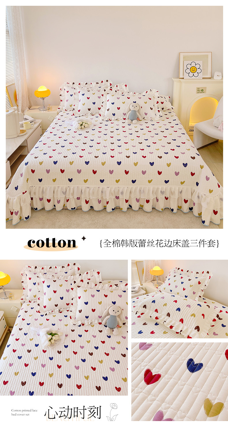 宜凡 2023新款全棉双层花边床盖三件套系列 心动时刻