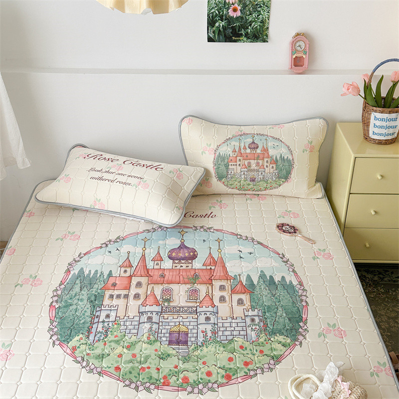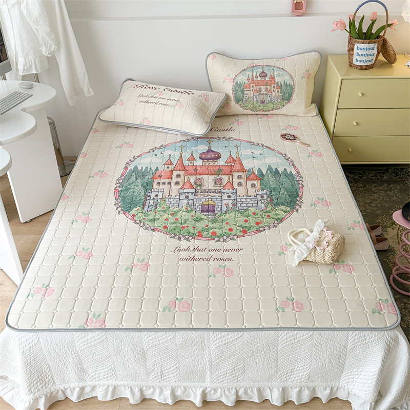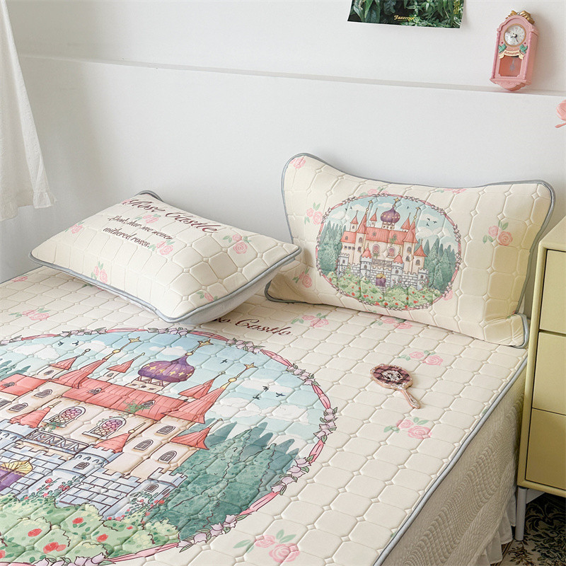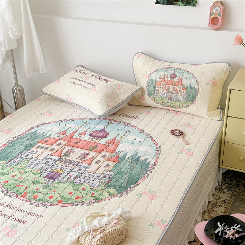 昔可 2023新款方块绗缝乳胶凉席复古风 童话城堡