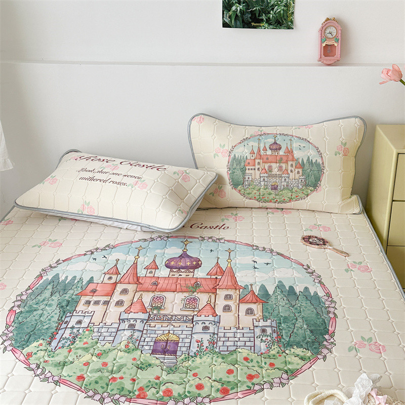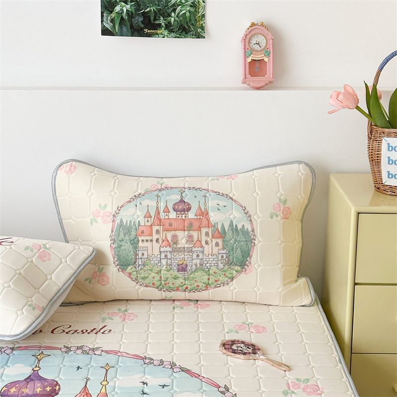 商品名称:昔可 2023新款方块绗缝乳胶凉席复古风 童话城堡