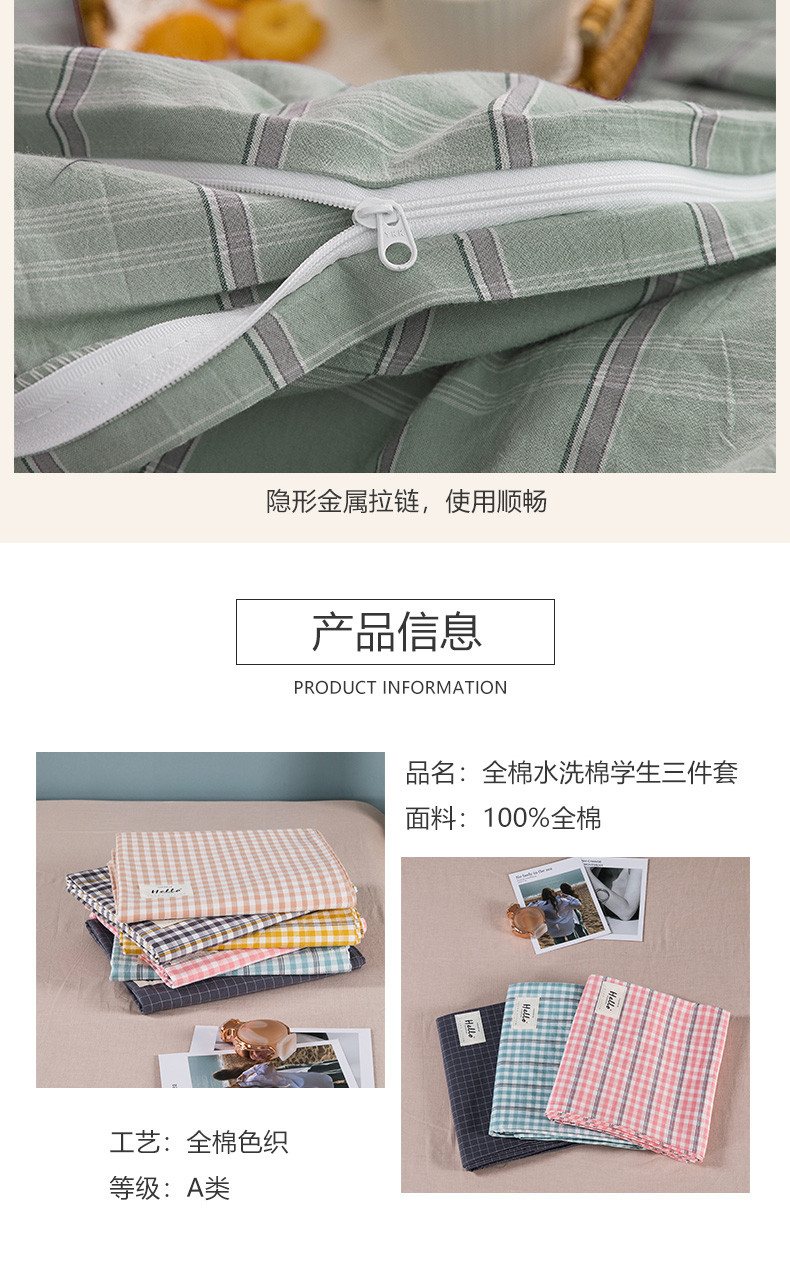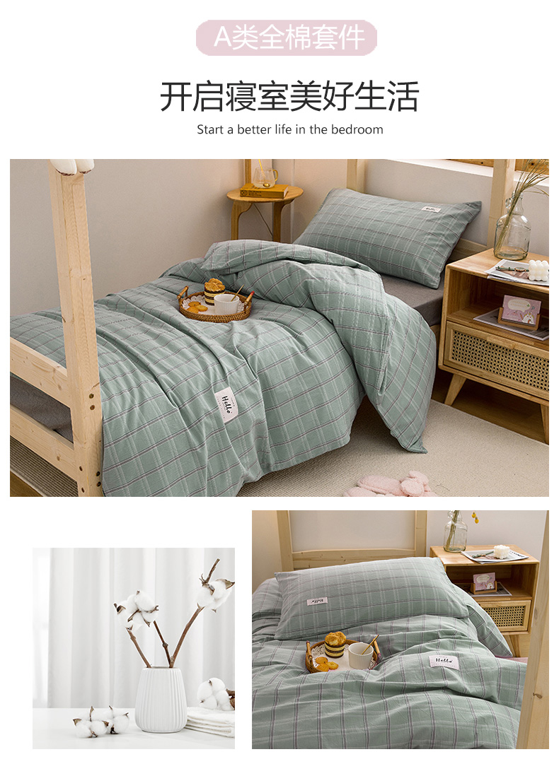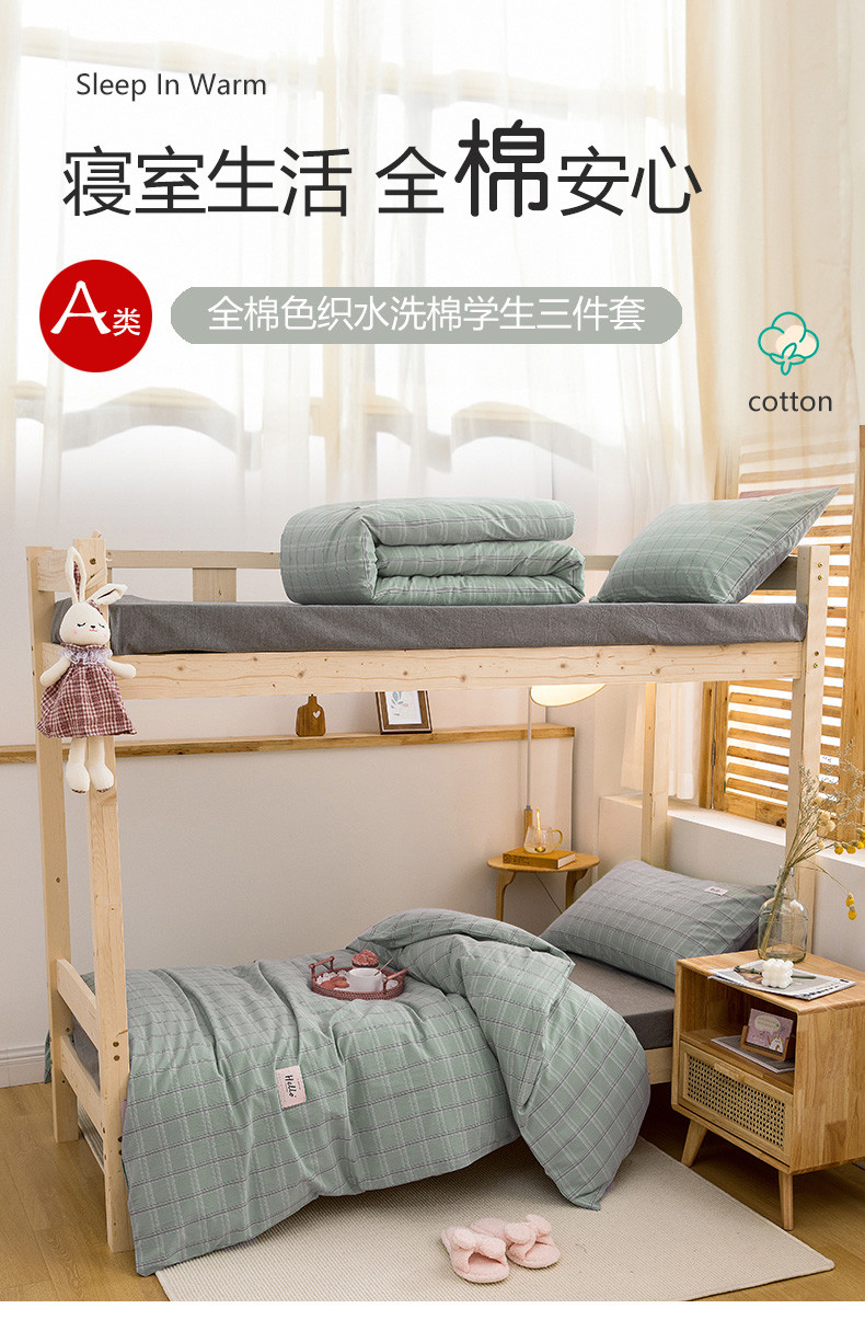 当前位置: 91家纺网 > 商品网购 > 床品套件 > 三件套 > 柠萌 2025新款A类全棉色织水洗棉学生宿舍上下铺全棉三件套 海蓝格