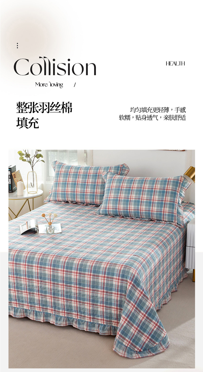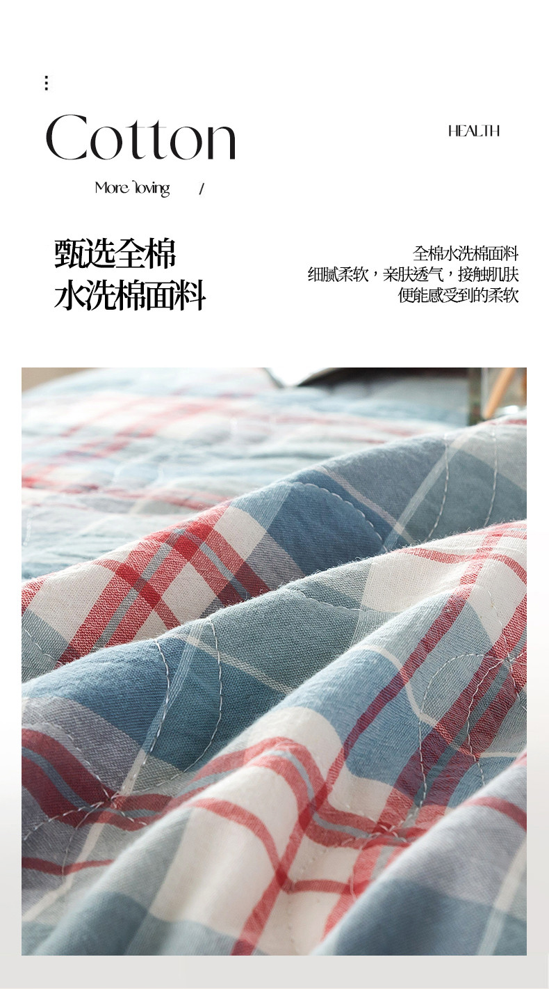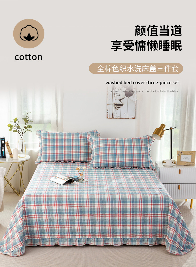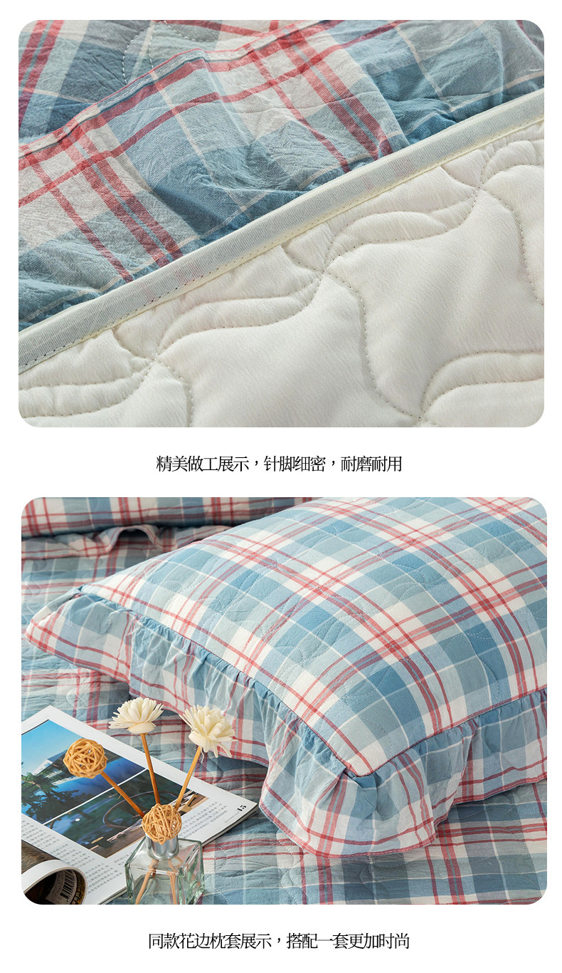 商品名称:优姿 2024新款全棉色织水洗棉床盖格子系列床盖三件套 格子蓝