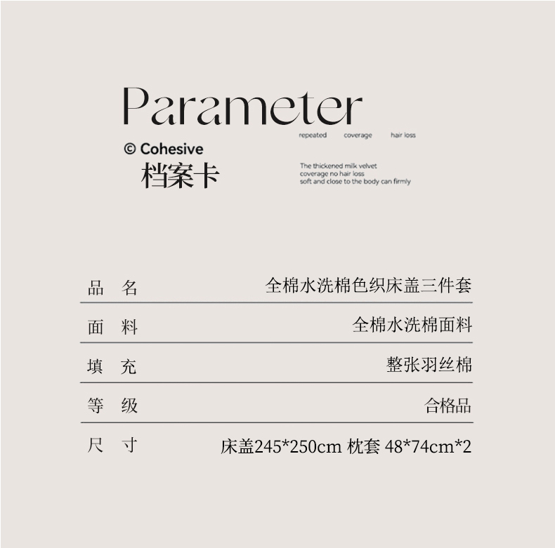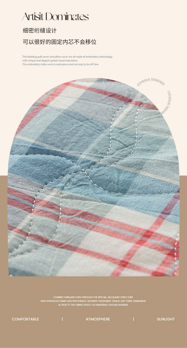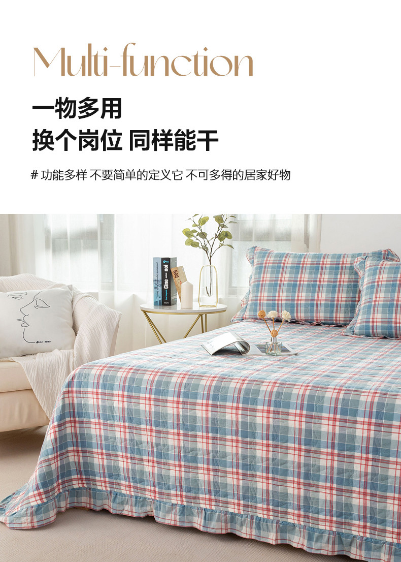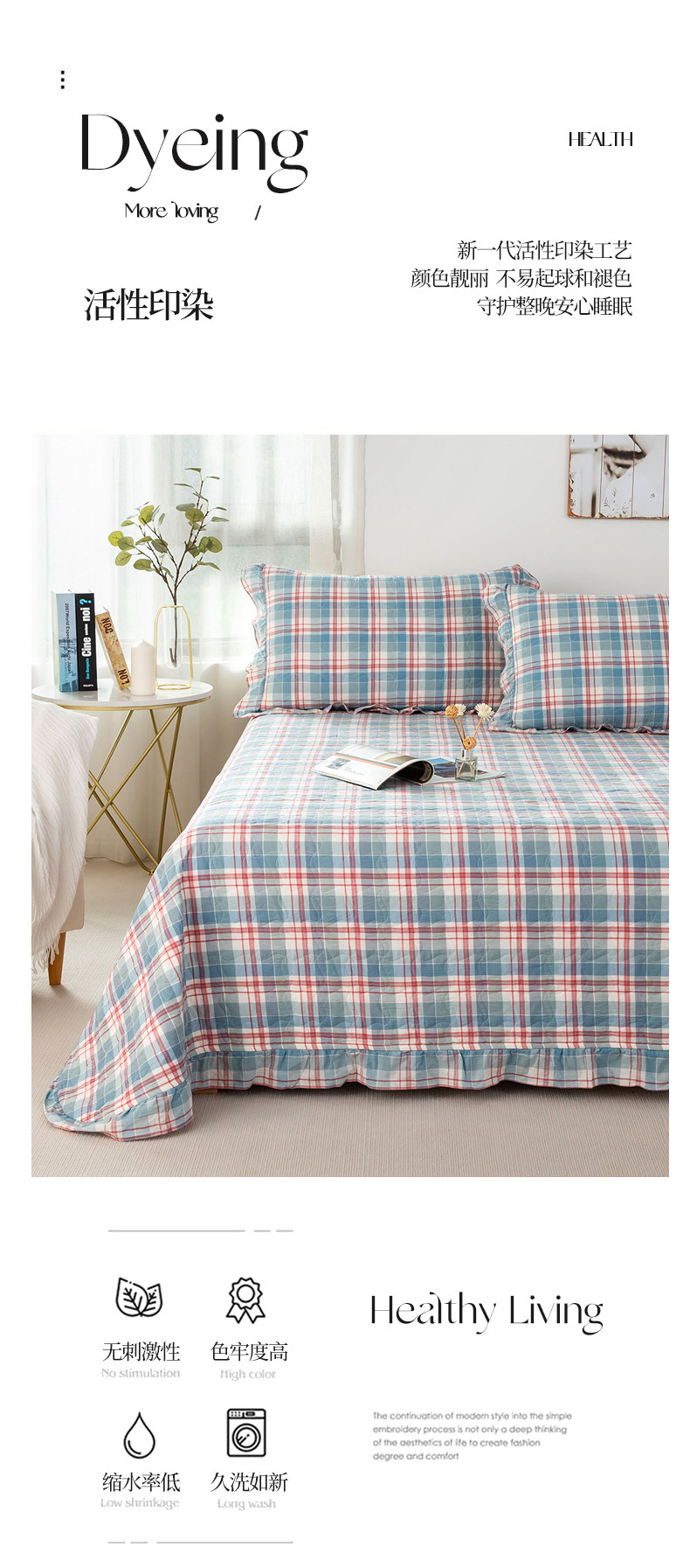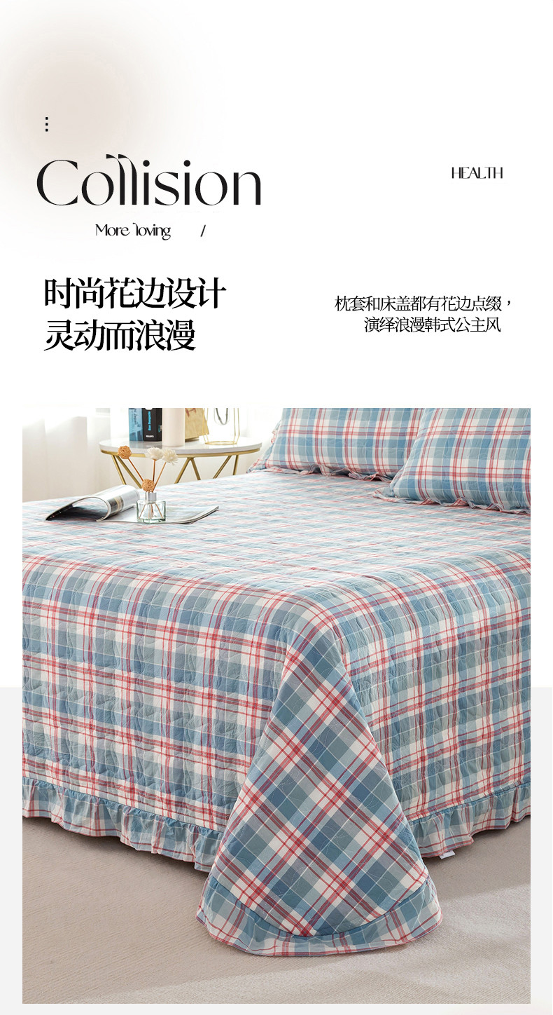 商品名称:优姿 2024新款全棉色织水洗棉床盖格子系列床盖三件套 格子蓝