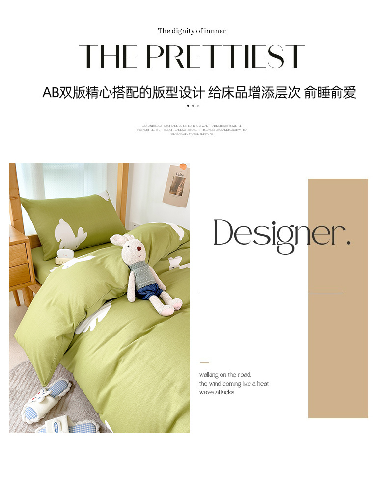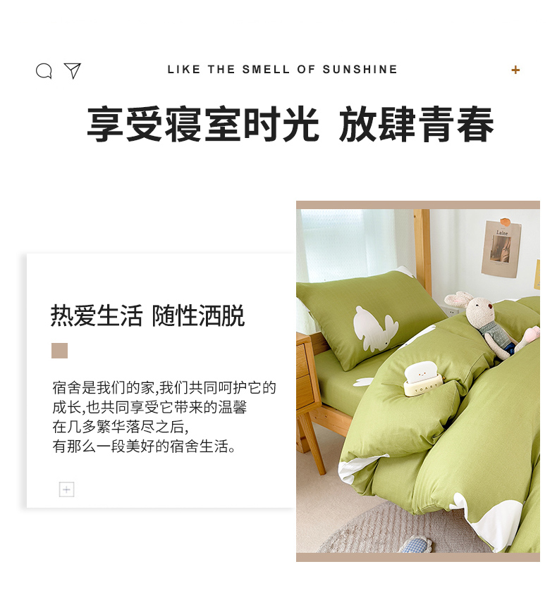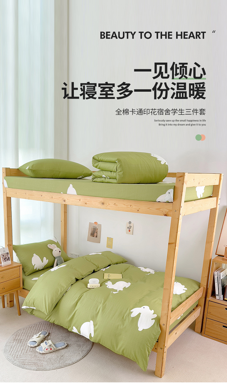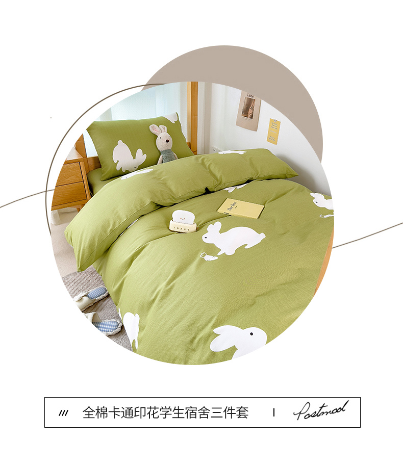 商品名称:芃成家纺 2023新款全棉13070卡通印花学生三件套 可爱兔