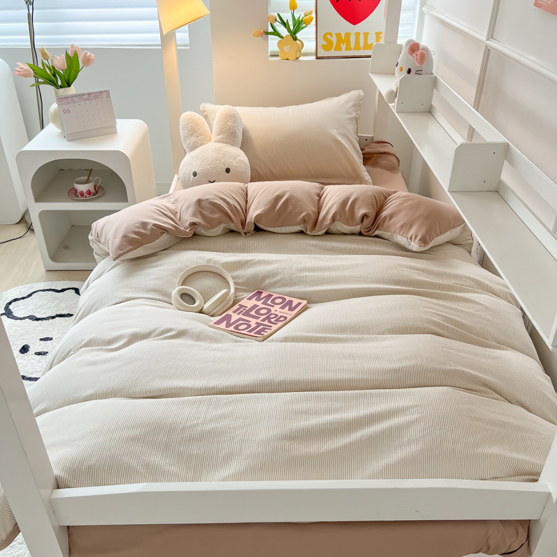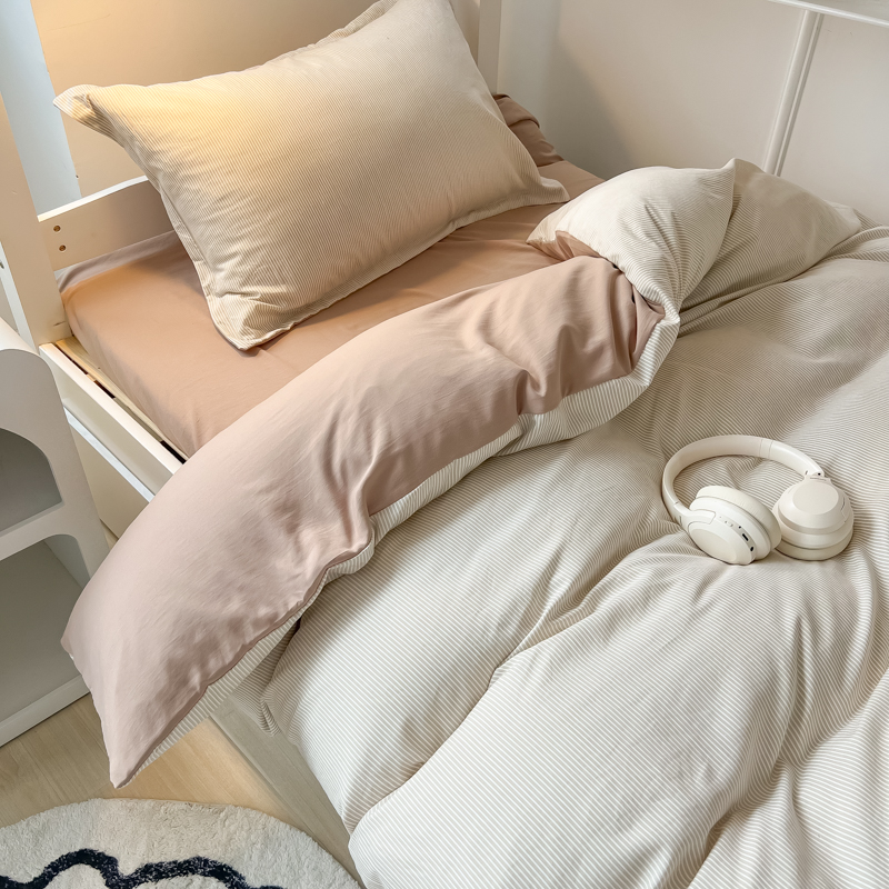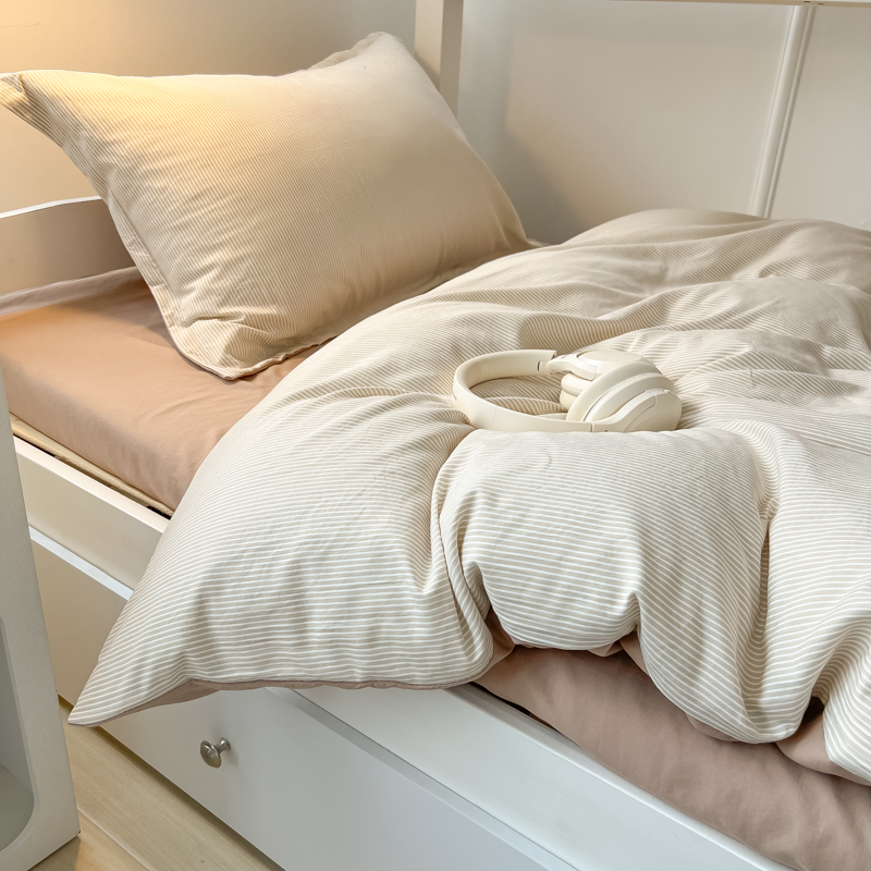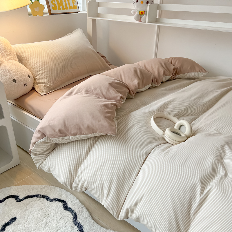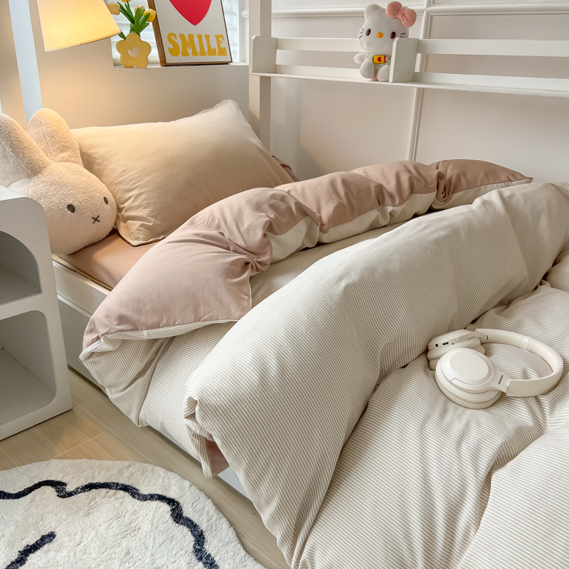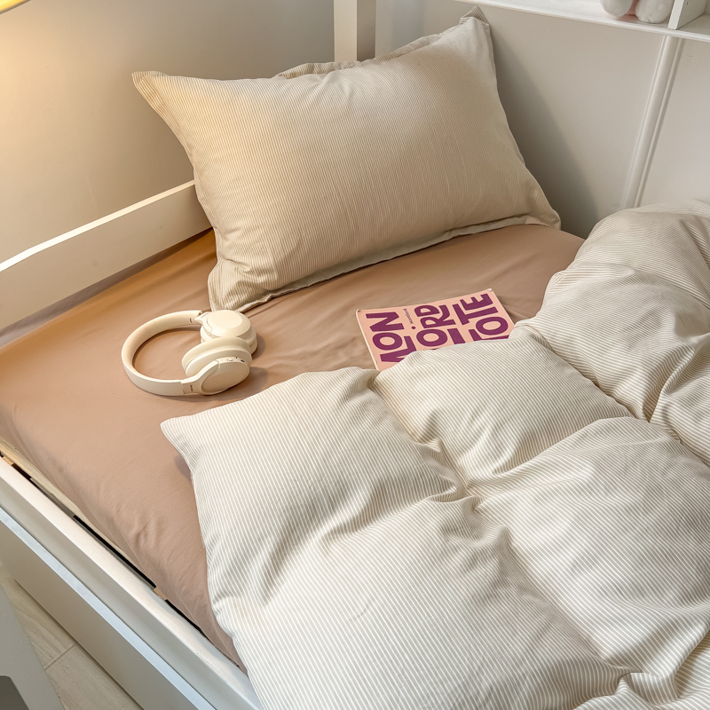当前位置: 91家纺网 > 商品网购 > 床品套件 > 四件套 > 水洗棉四件套 > yyds网供 2023新款细条纹水洗棉三件套学生宿舍单人双人四件套纯色双拼单被套单件 细条纹-奶咖