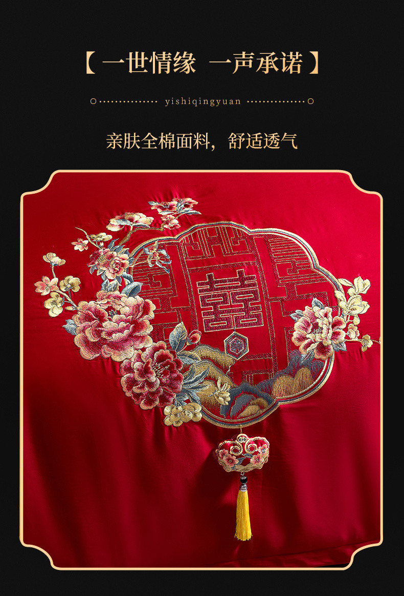 当前位置: 91家纺网 > 商品网购 > 床品套件 > 多件套 > 多件套 > 慕她 2025全棉刺绣婚庆套件专版系列 双喜临门