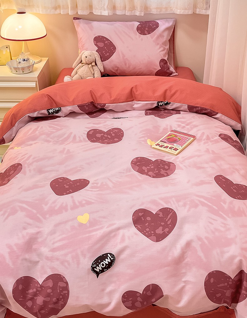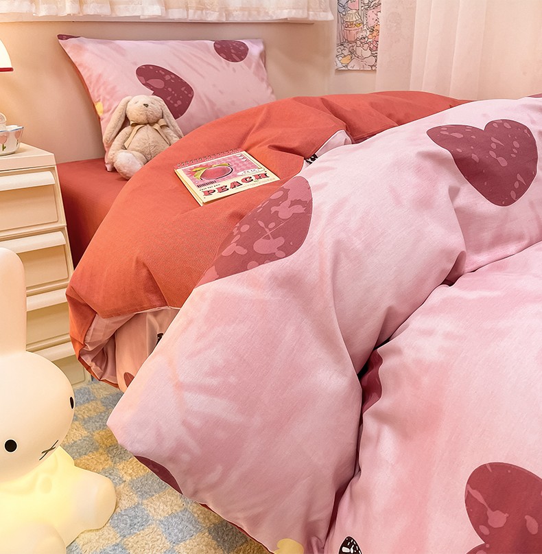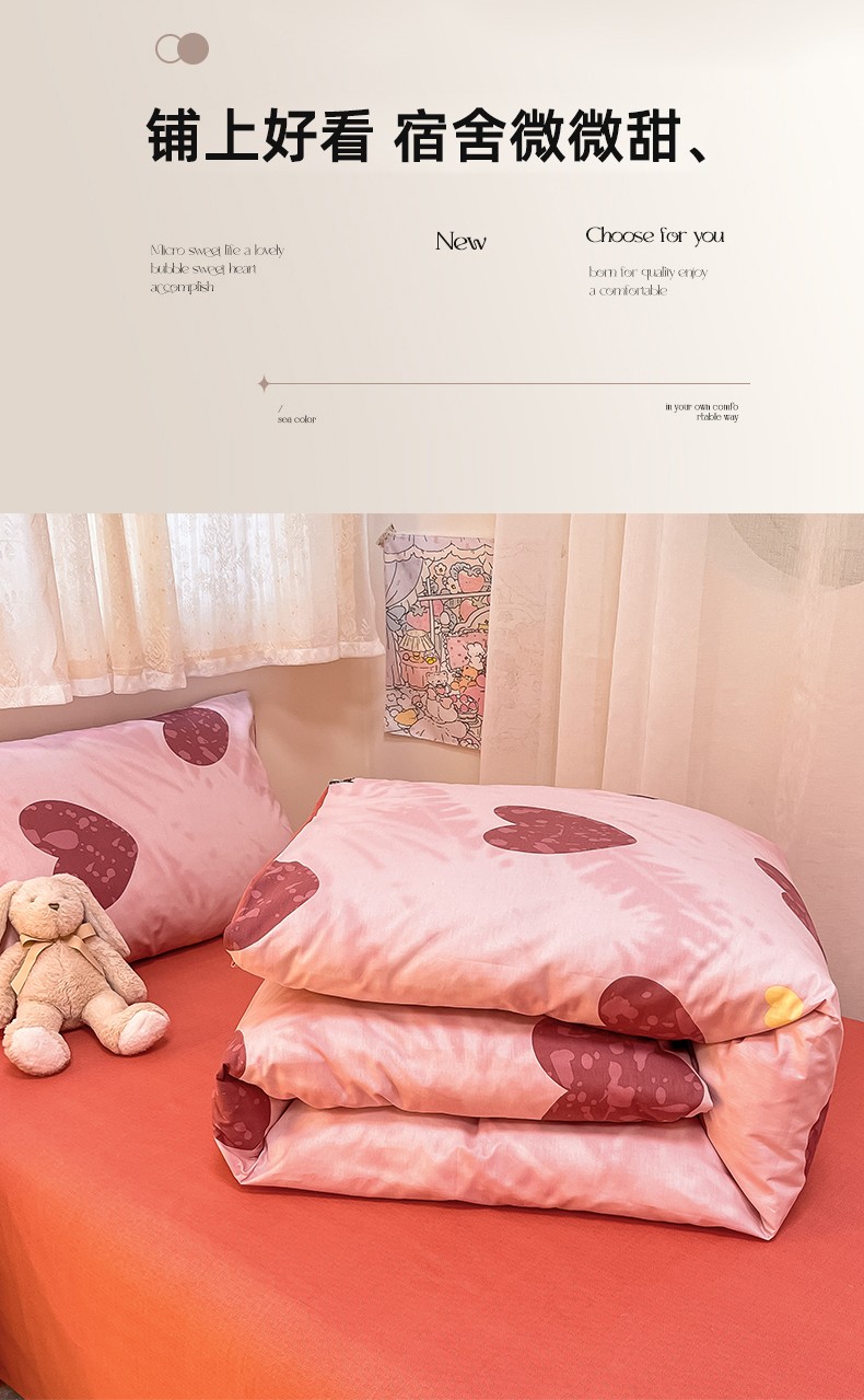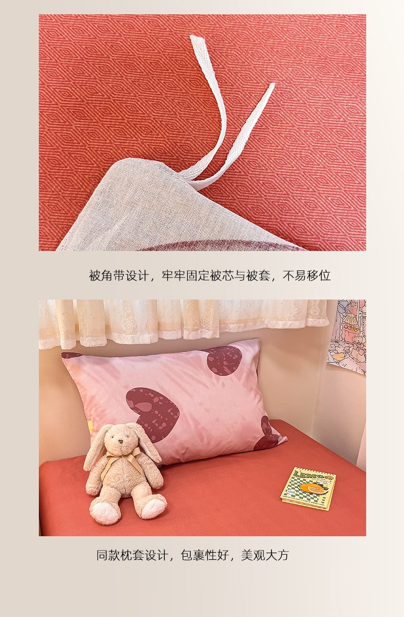 商品名称:简宜13070纯棉全棉40支斜纹卡通小清新学生床三件套四件套 浓情爱意