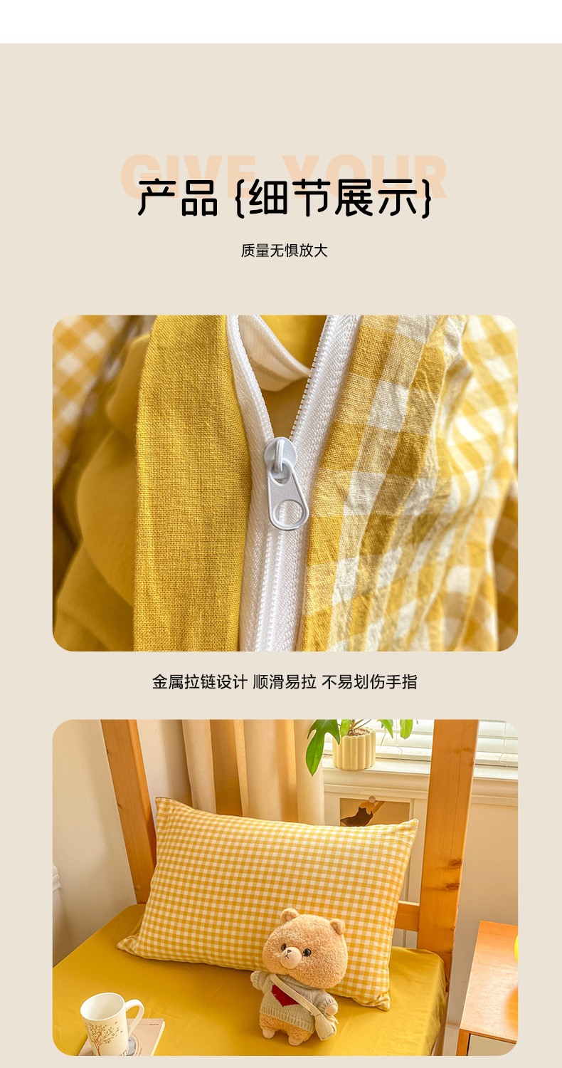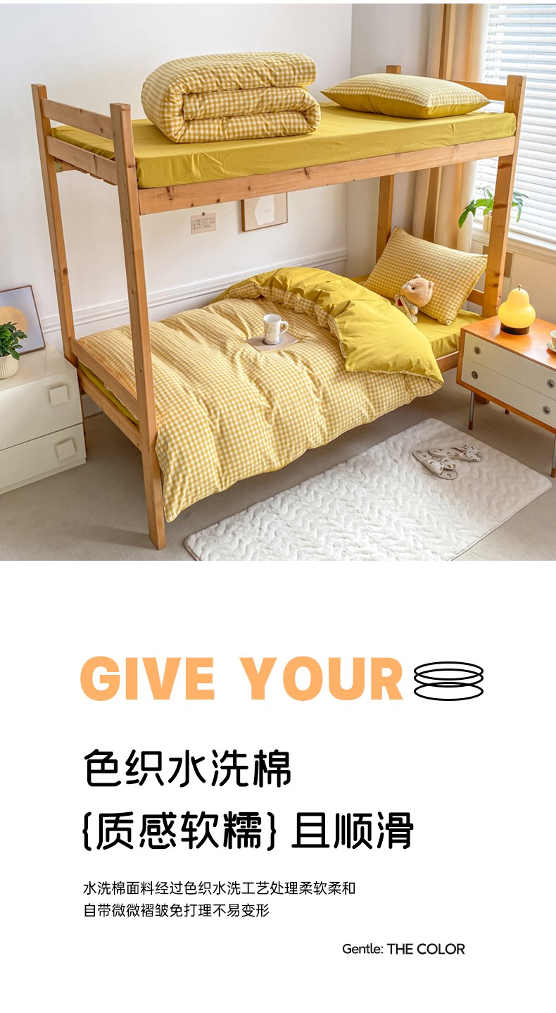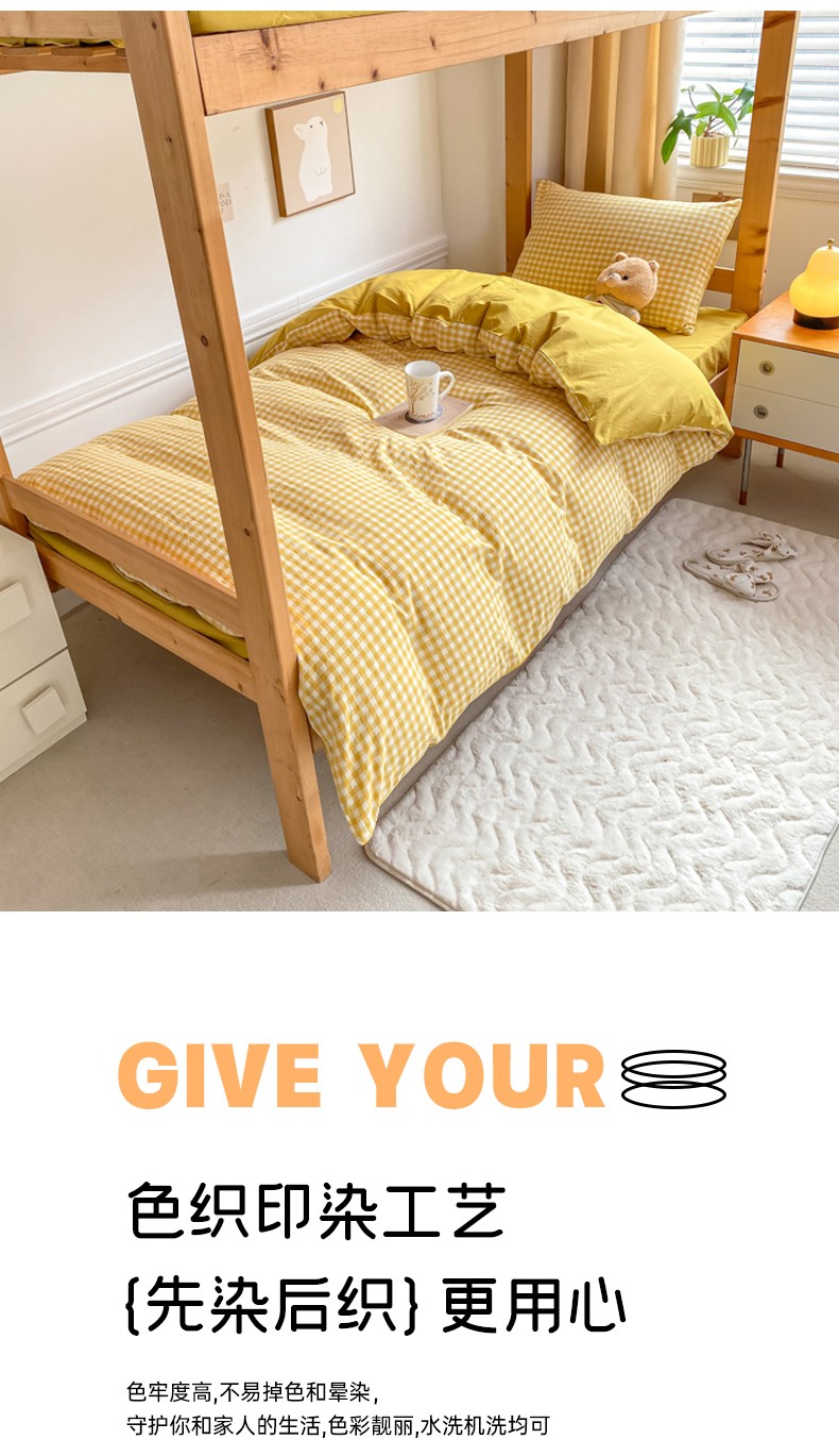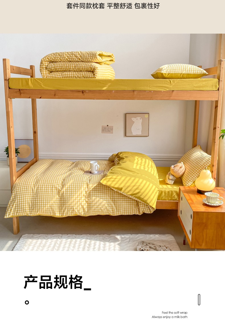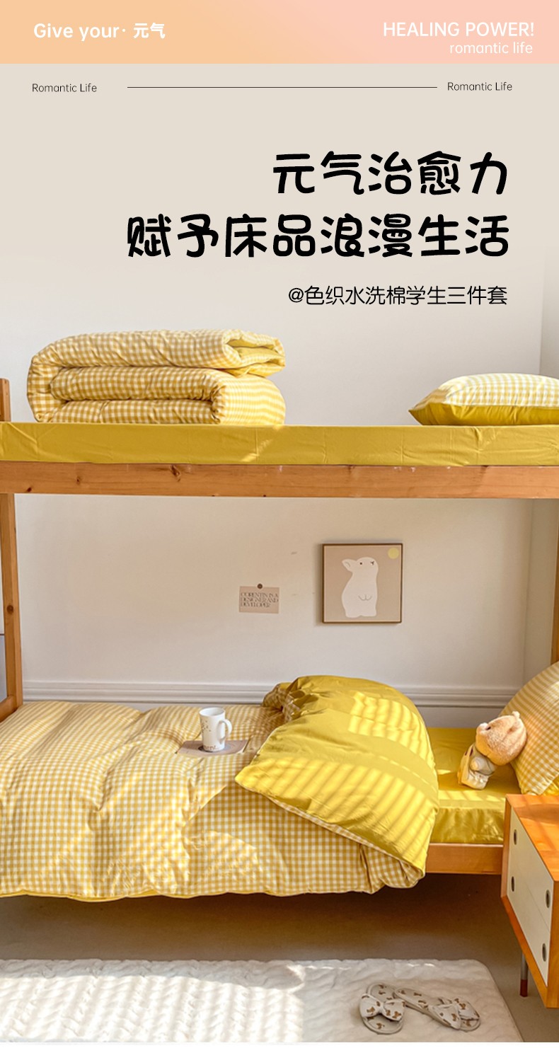 商品名称:吉象 2025新款色织学生水洗棉上下铺三件套 黄小格