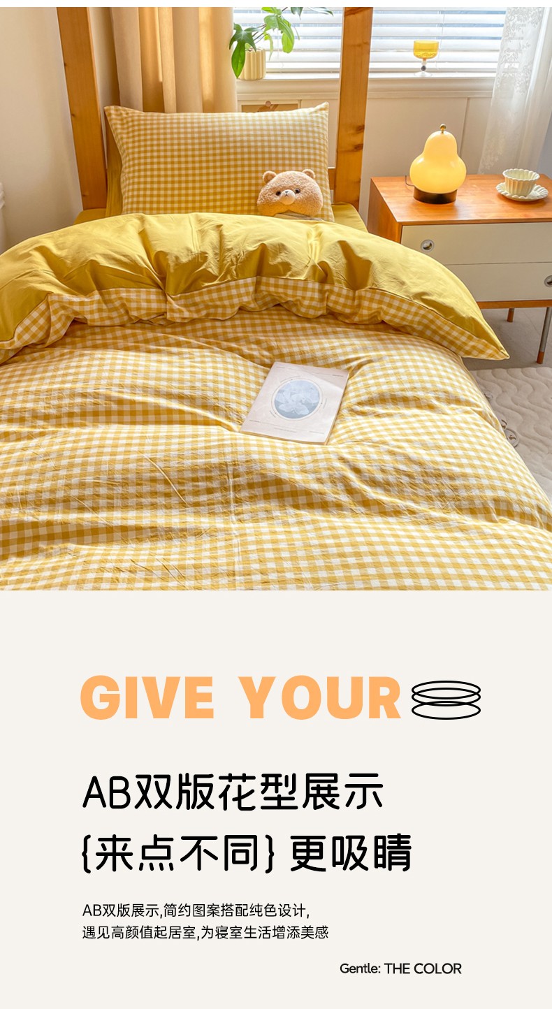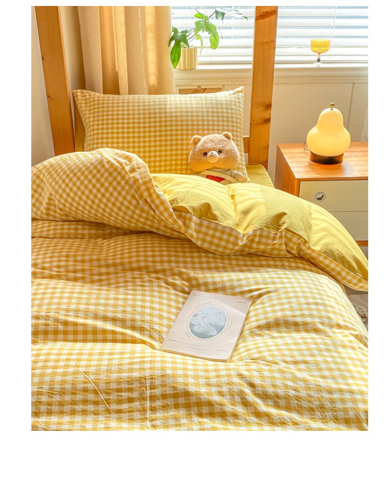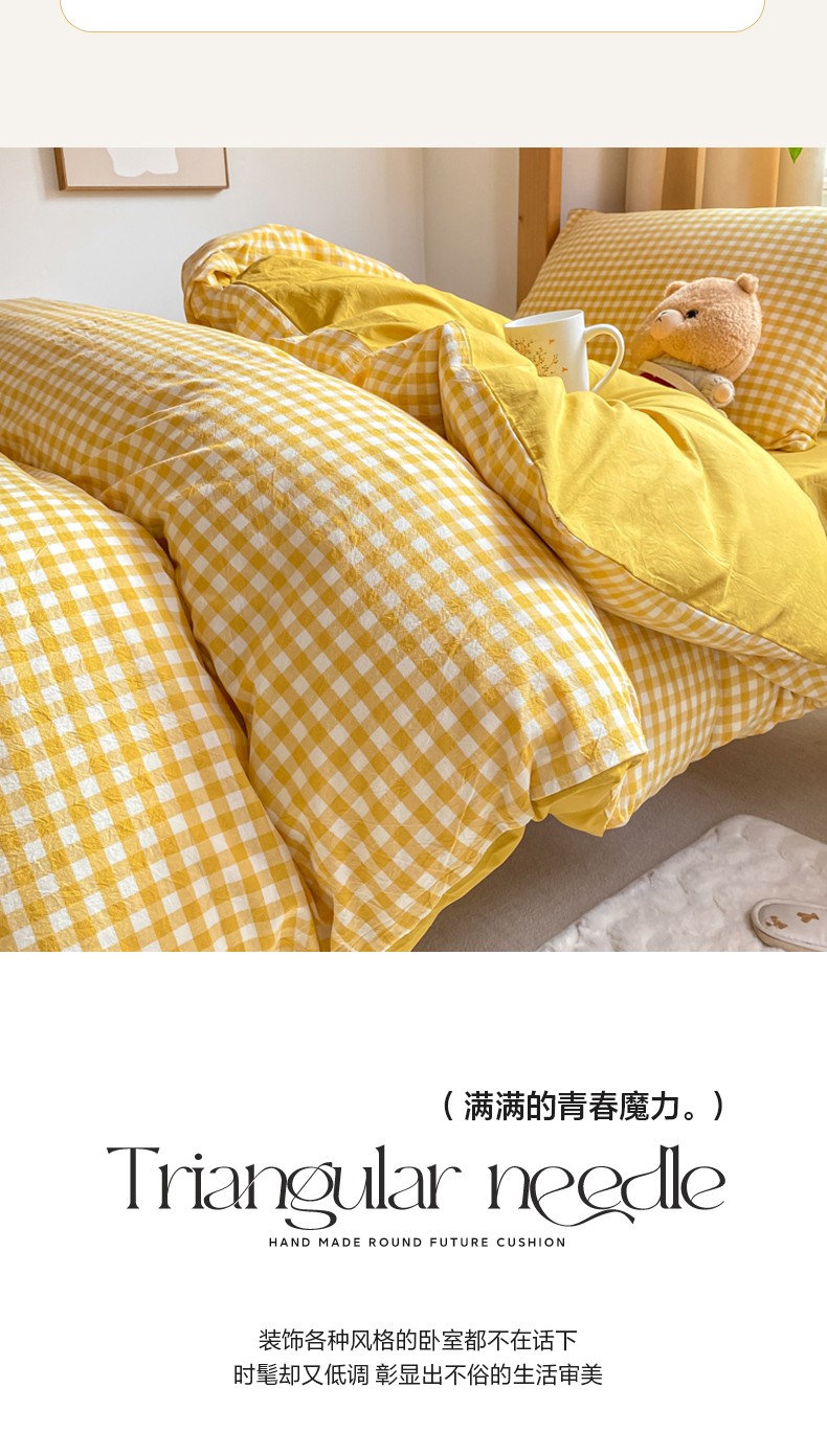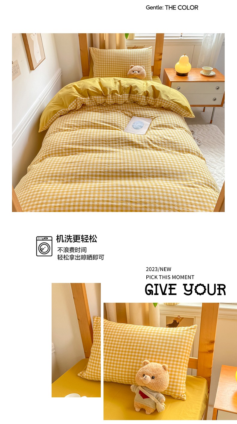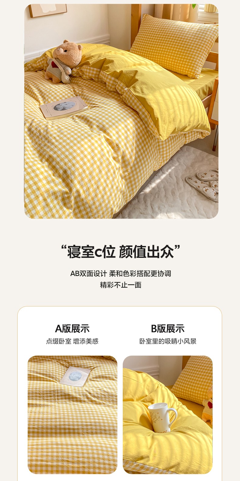 商品名称:吉象 2025新款色织学生水洗棉上下铺三件套 黄小格