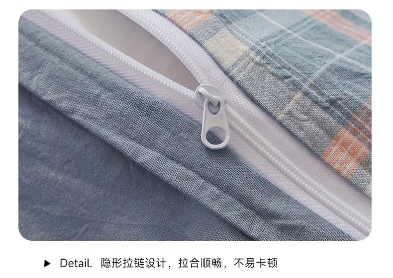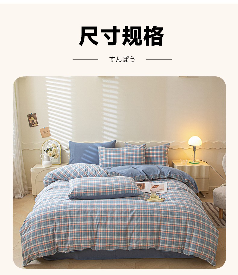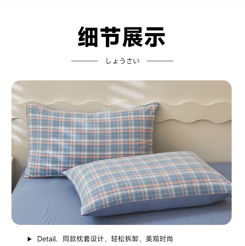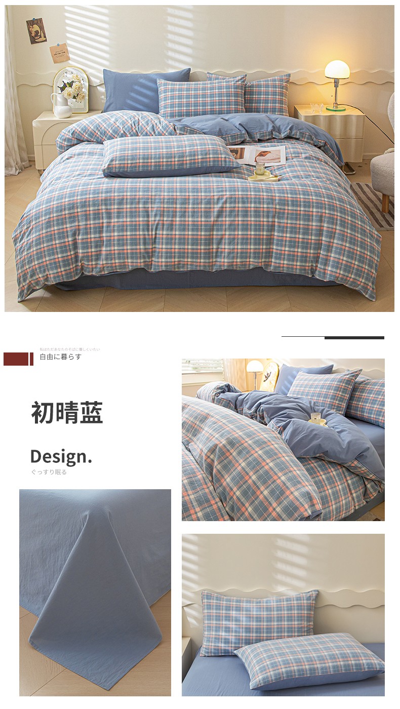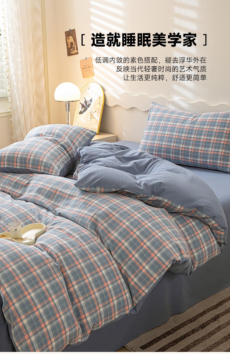 商品名称:吉象 2023新款全棉色织水洗棉四件套 初晴蓝