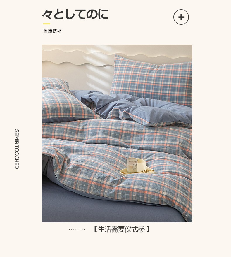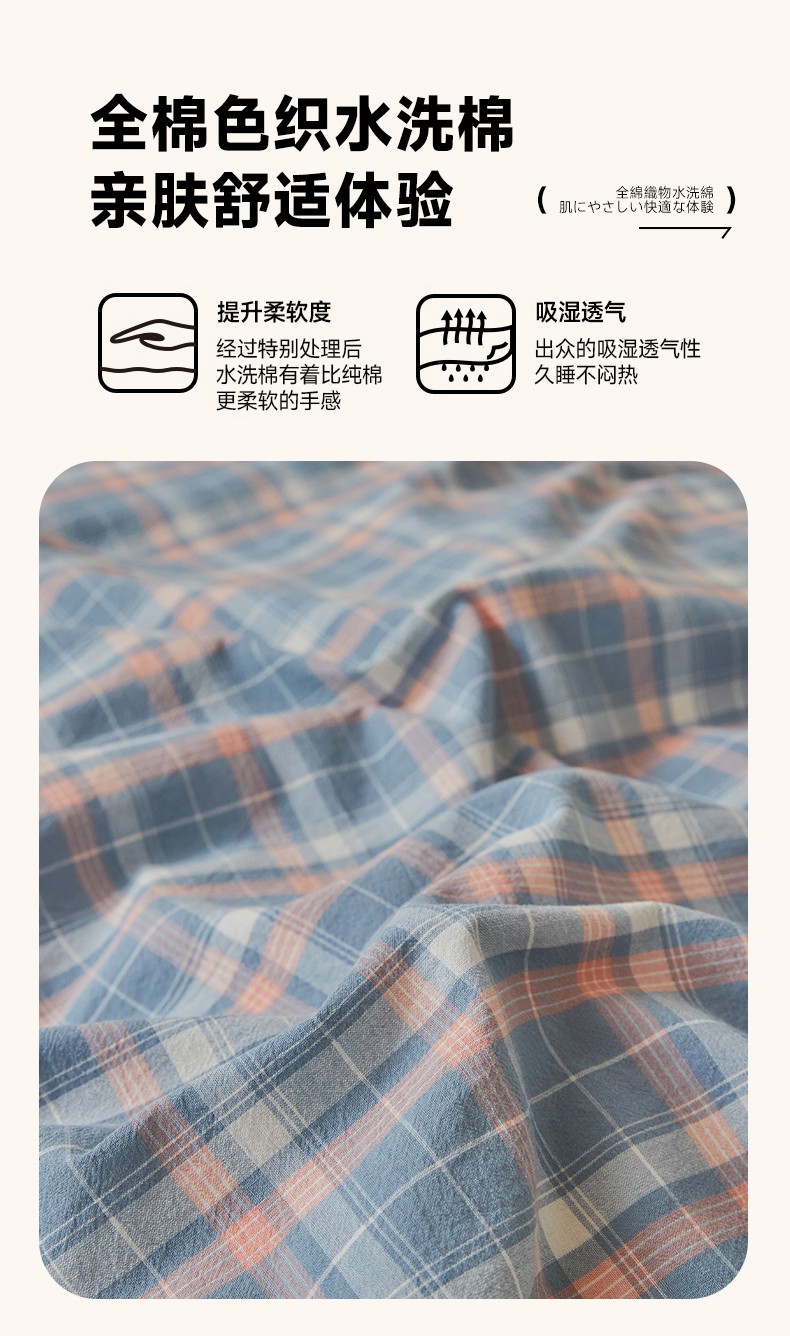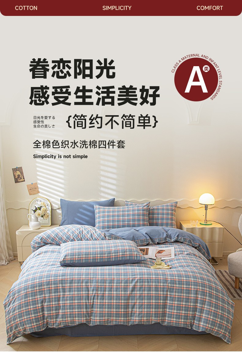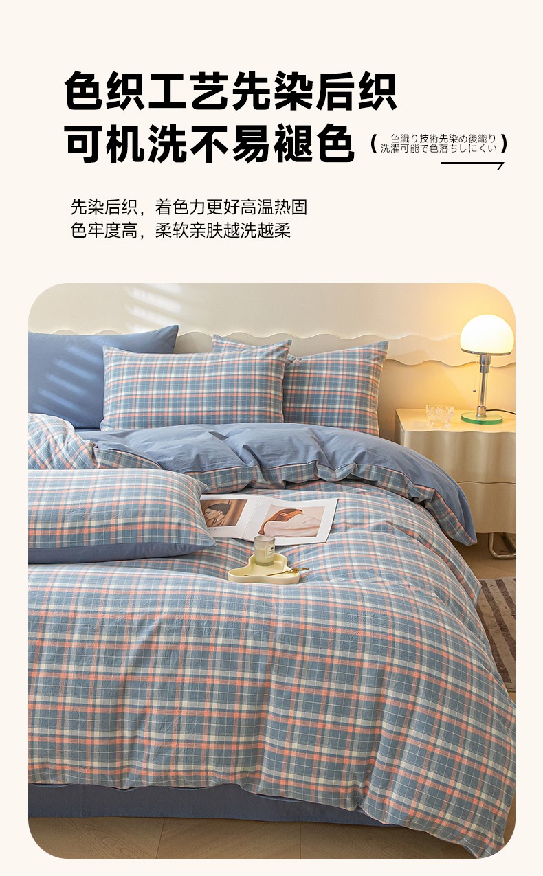 吉象 2023新款全棉色织水洗棉四件套 初晴蓝