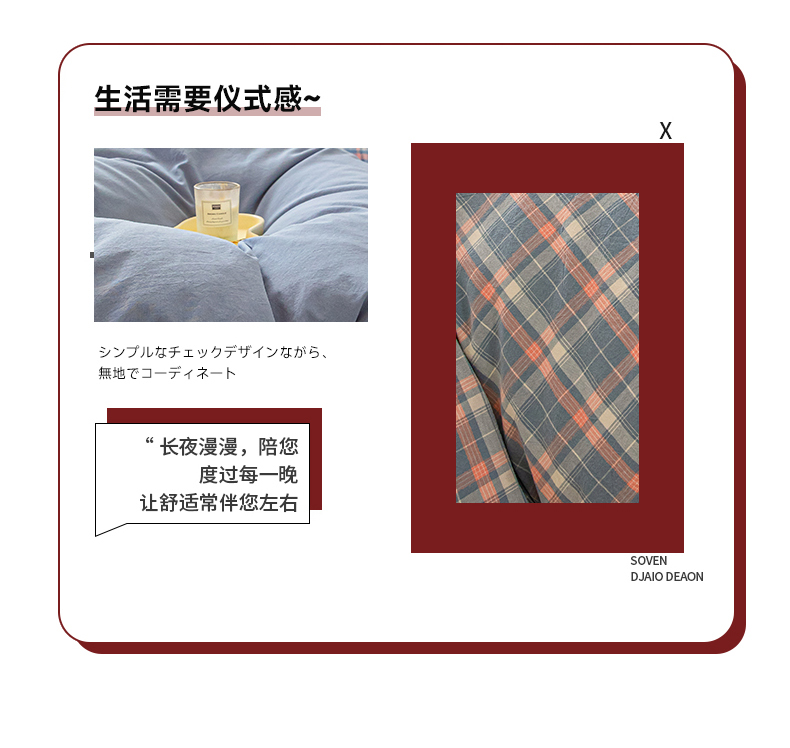(总)吉象家纺 2025新款全棉磨毛三角针贝壳边印花四件套,枫叶,满园花开 -桔,墨染,浅夏 -绿,清浅,薰染 -红