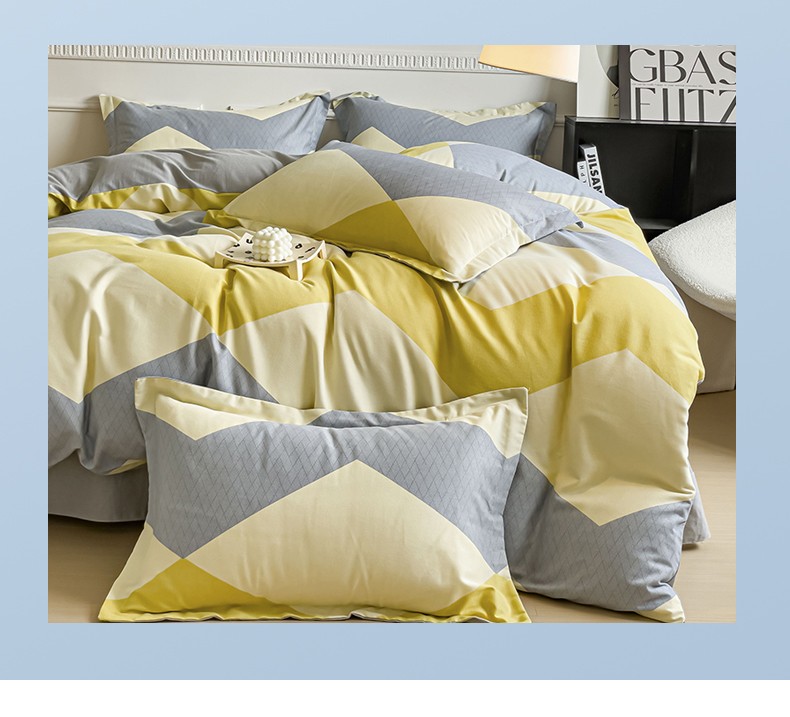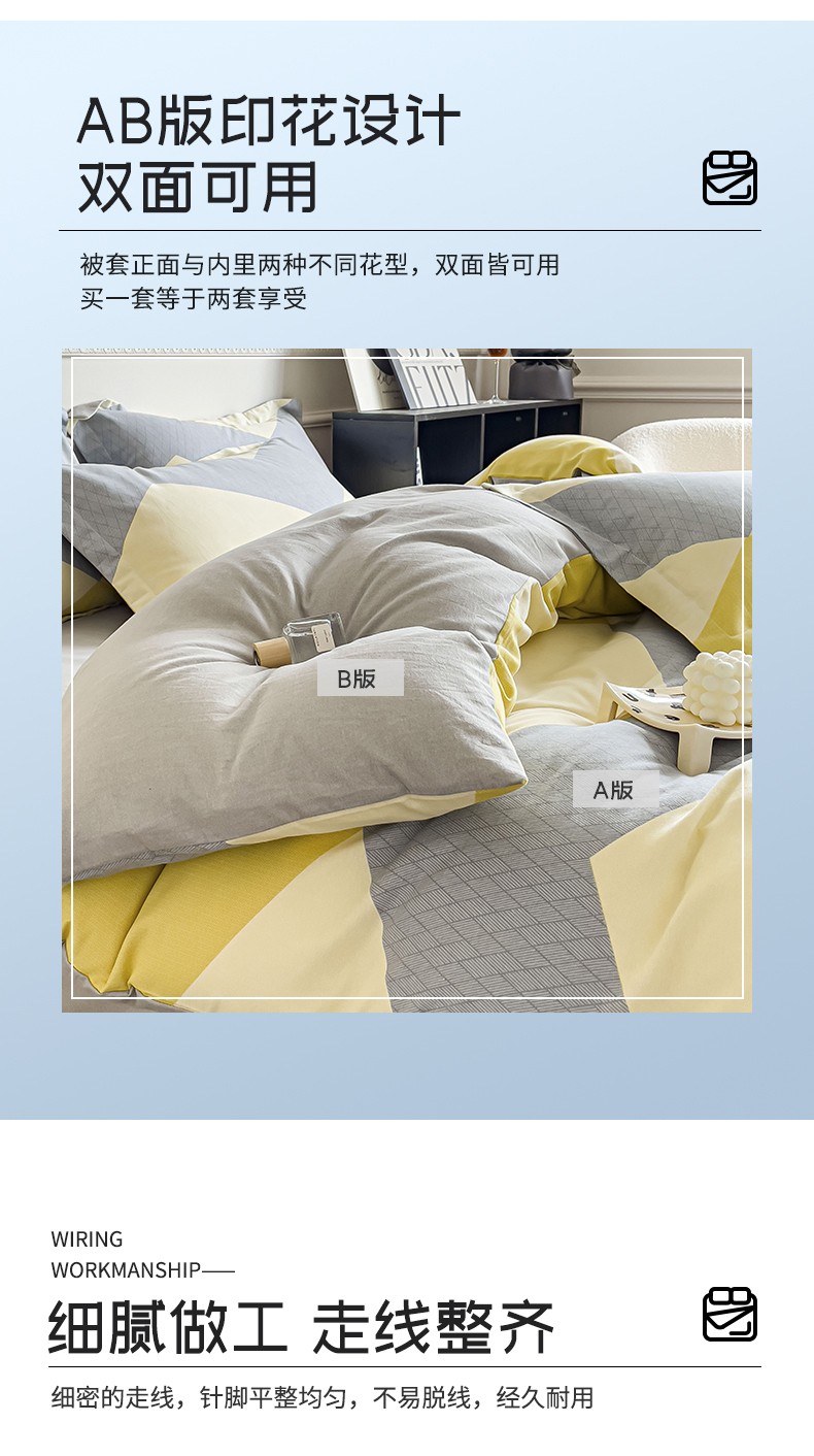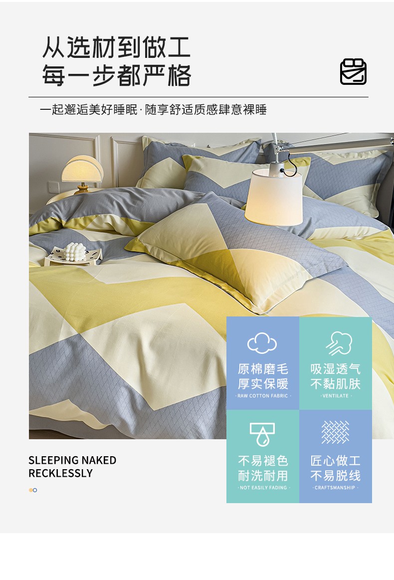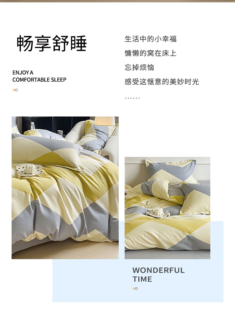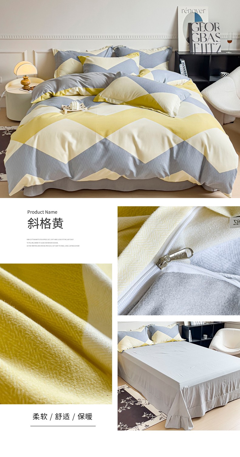 金丝鸟 2023新款原棉磨毛四件套简约系列 斜格黄