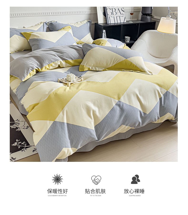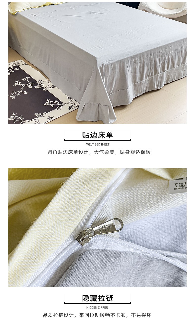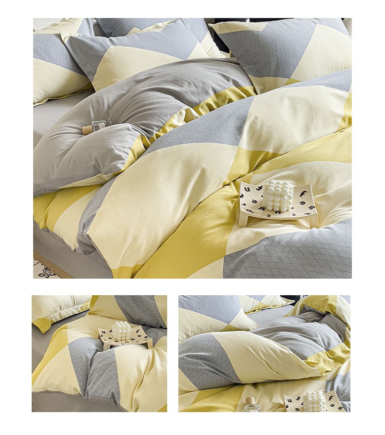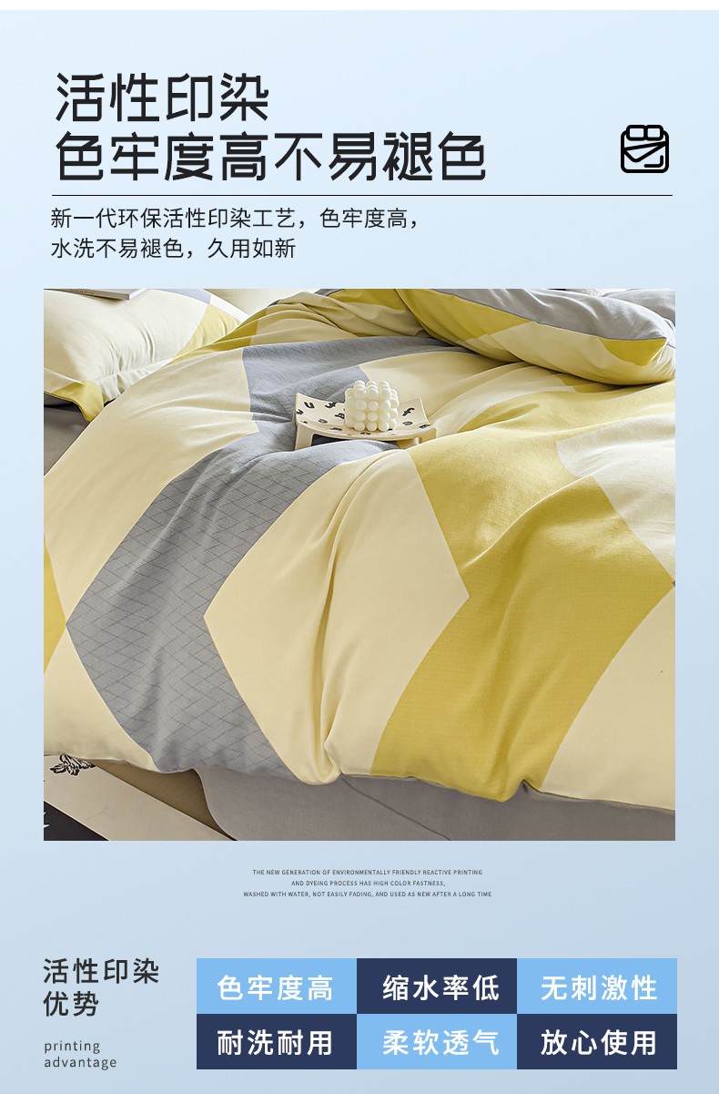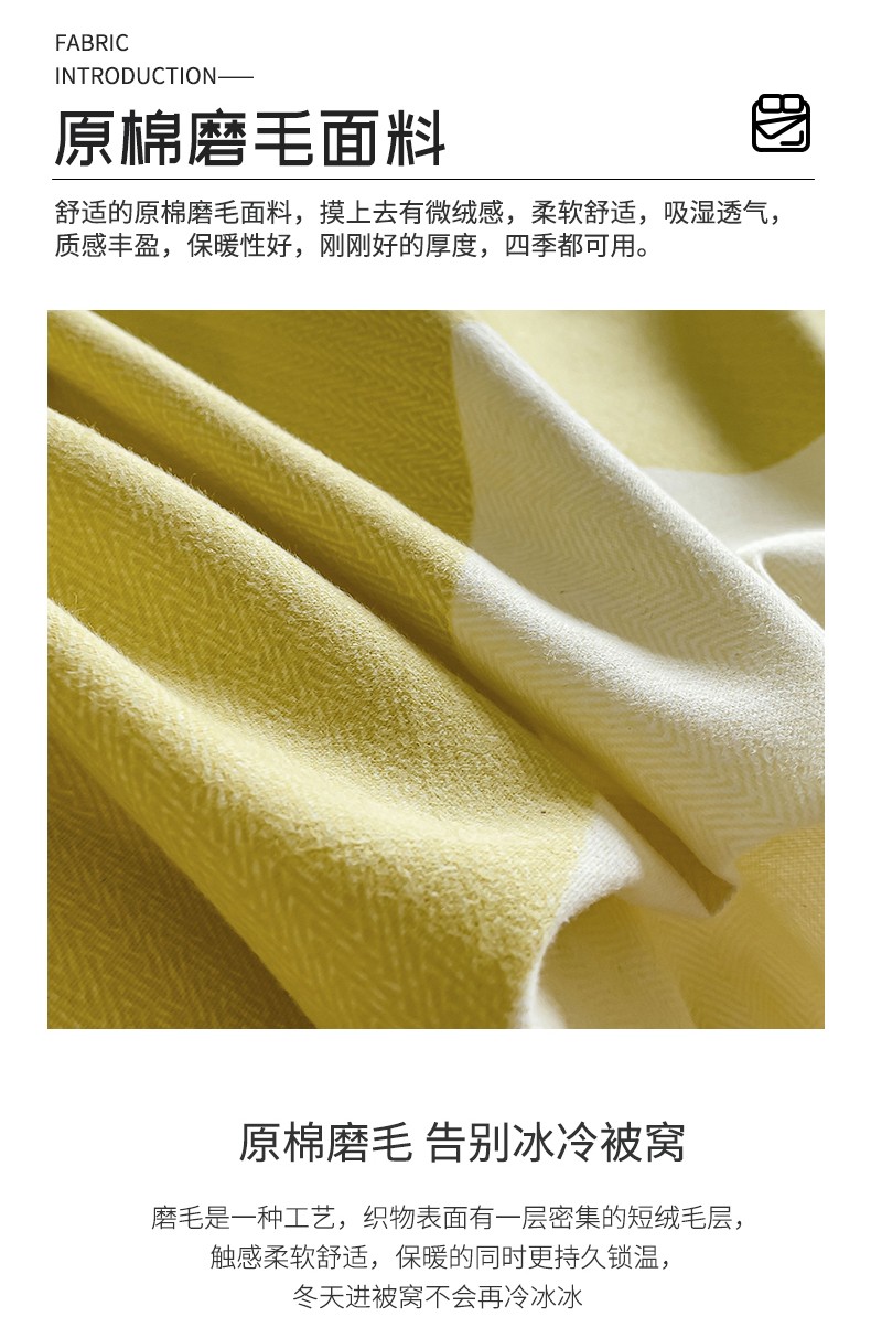 商品名称:金丝鸟 2023新款原棉磨毛四件套简约系列 斜格黄