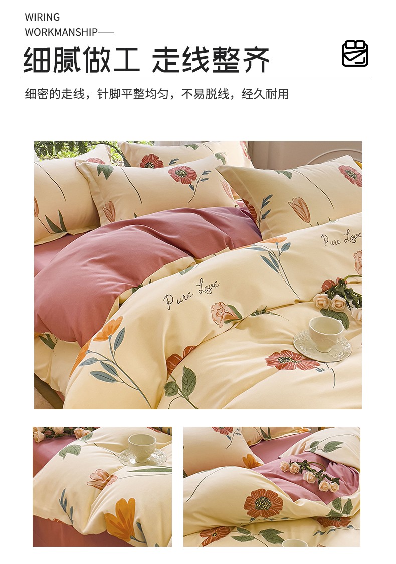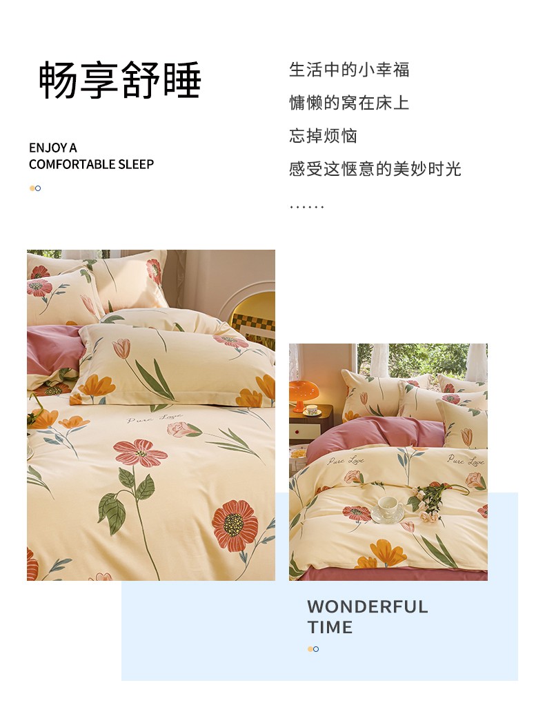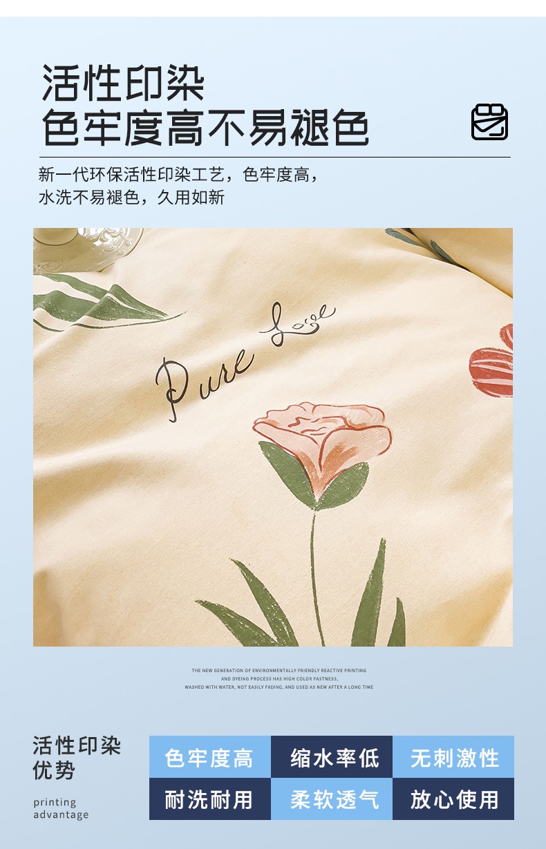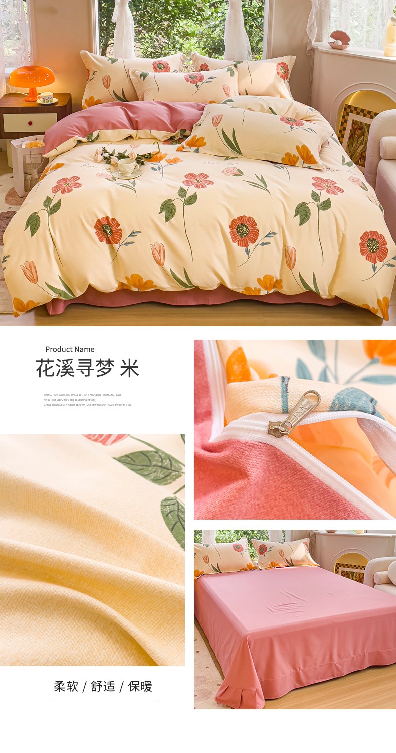商品名称:金丝鸟 2023新款原棉磨毛四件套小清新系列 花溪寻梦