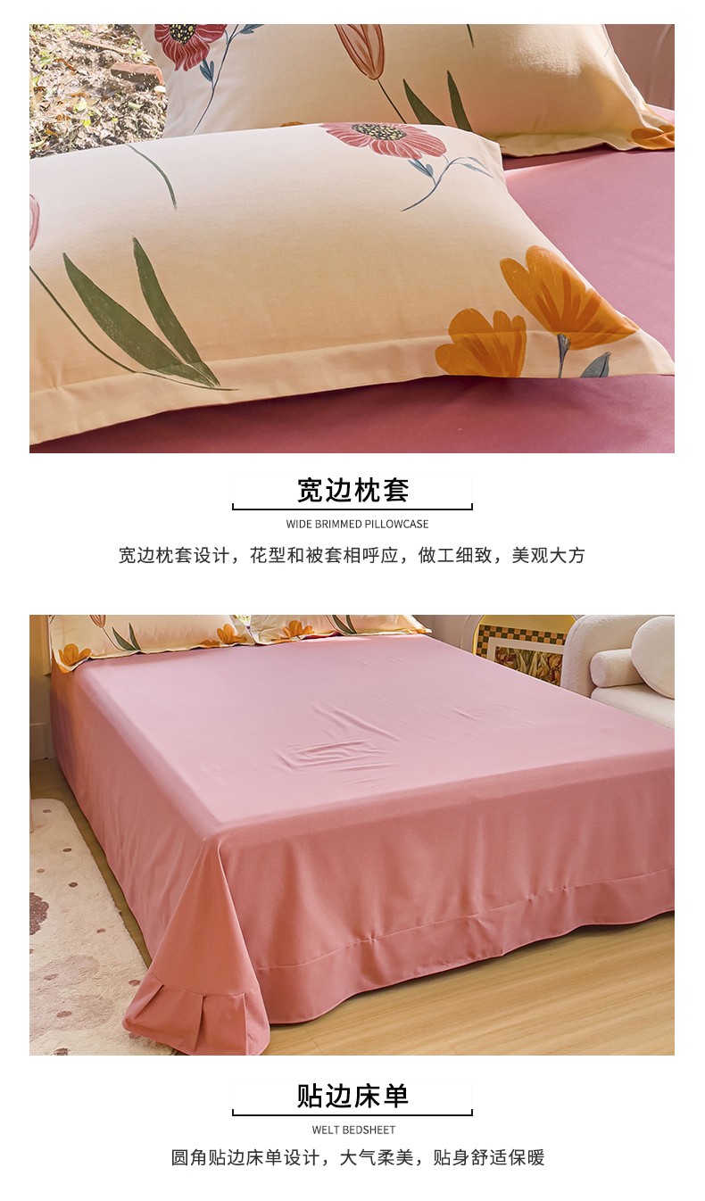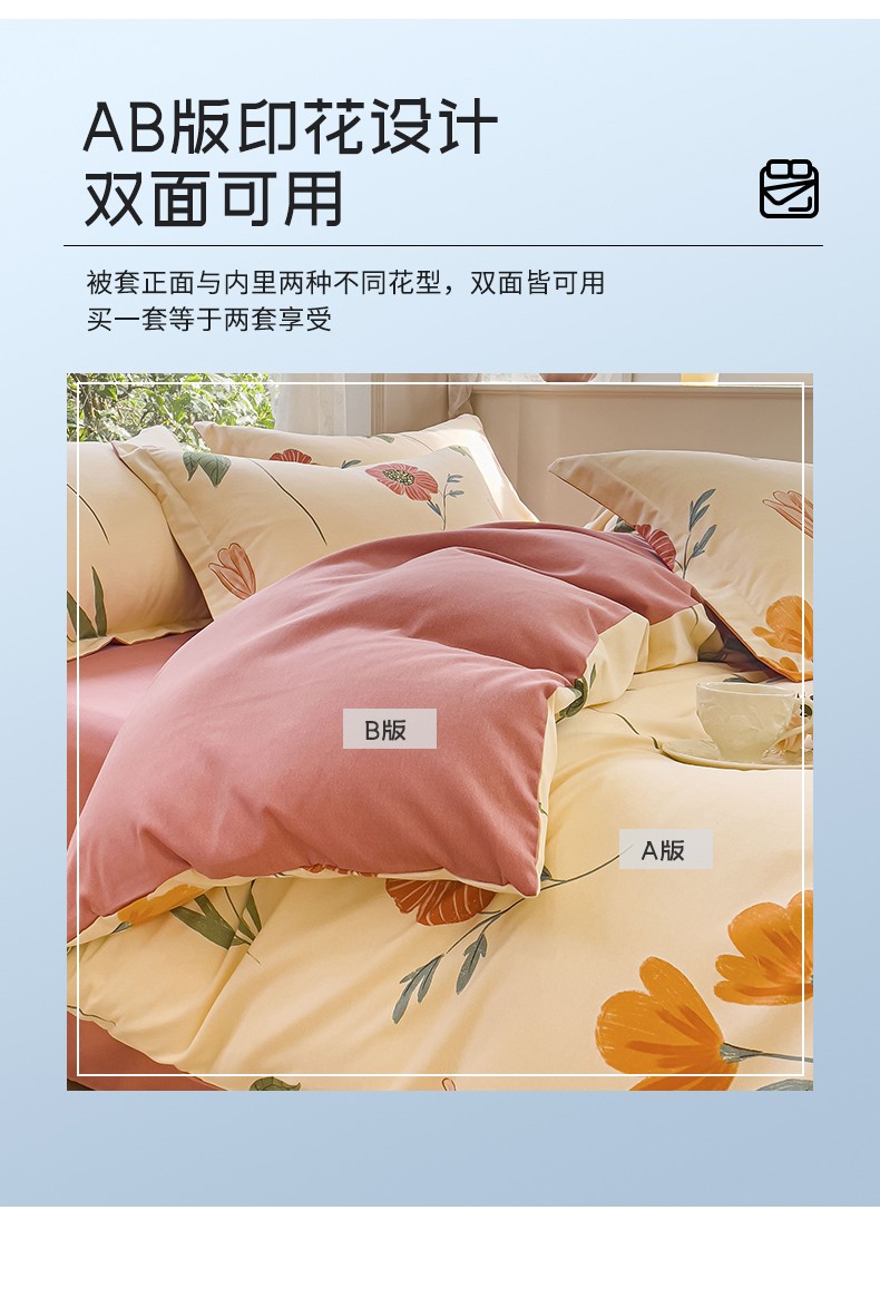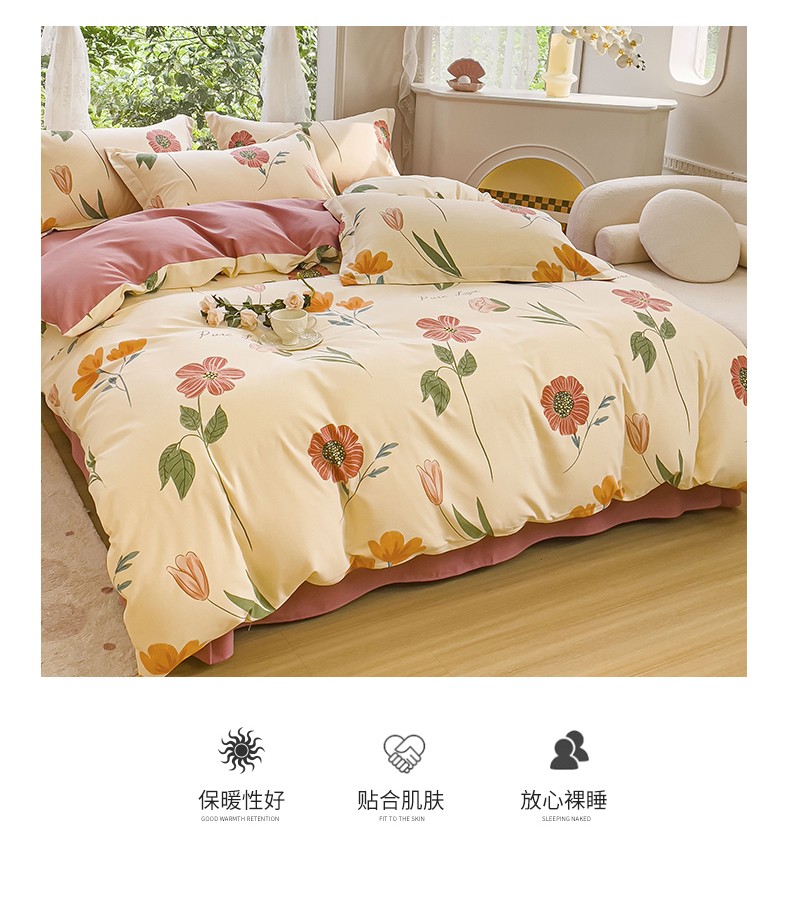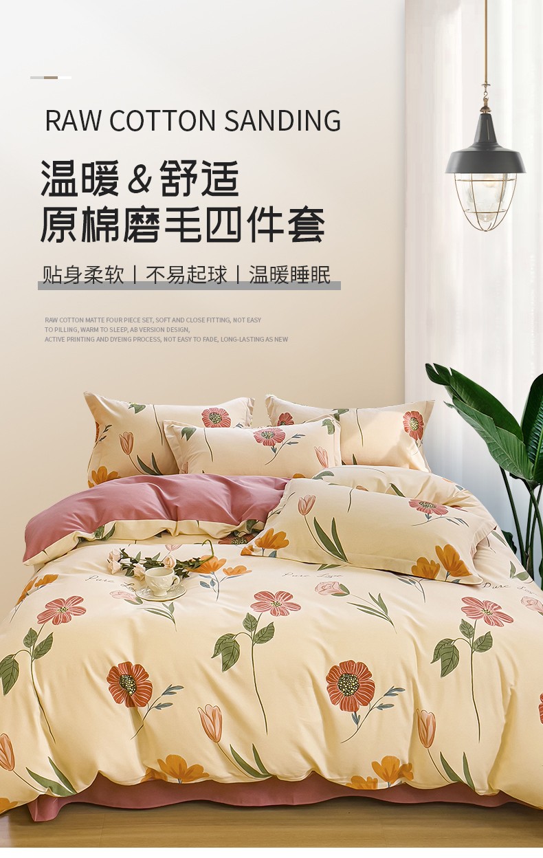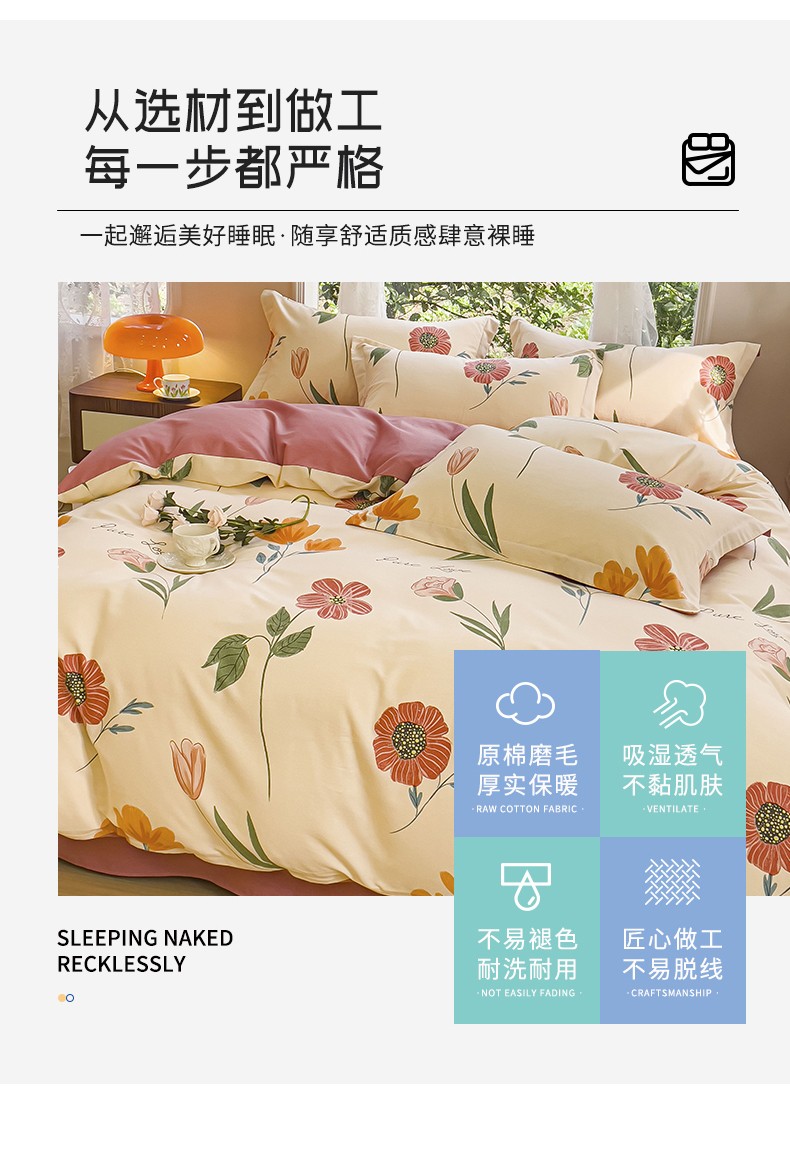 商品名称:金丝鸟 2023新款原棉磨毛四件套小清新系列 花溪寻梦