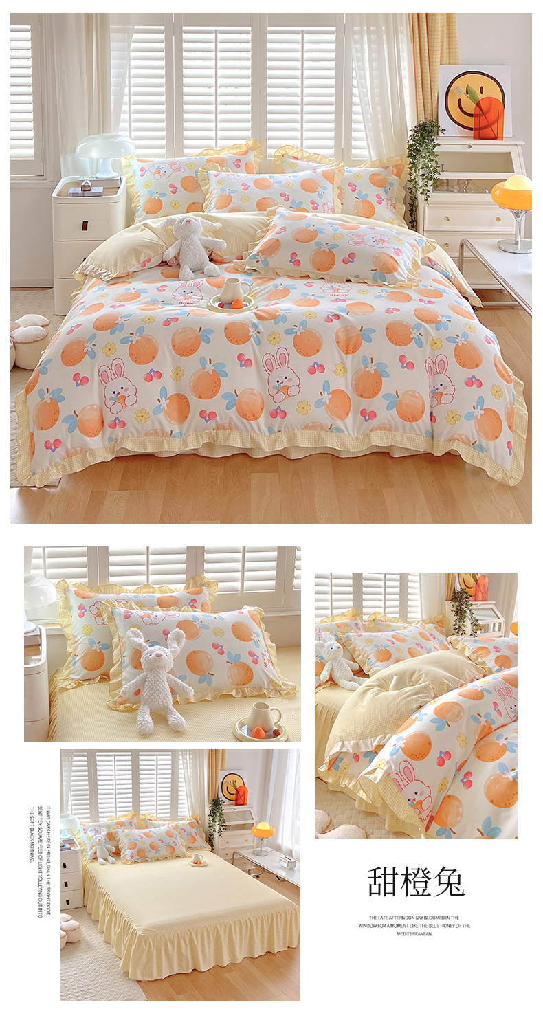 当前位置: 91家纺网 > 商品网购 > 床品套件 > 四件套 > 上尚居 2024新款小清新韩版花边磨毛四件套水洗棉 甜橙兔