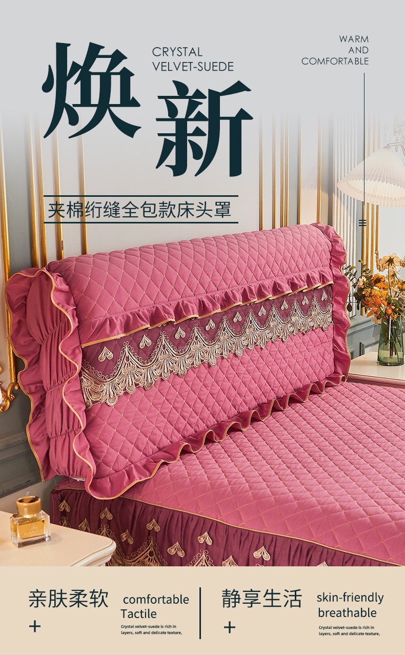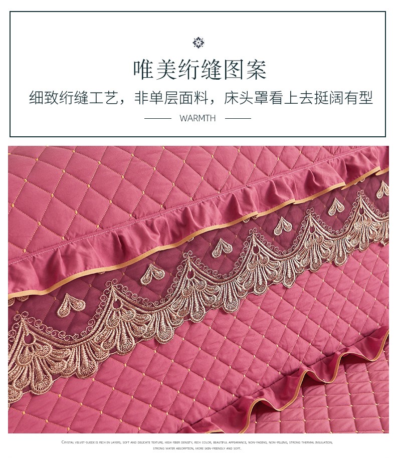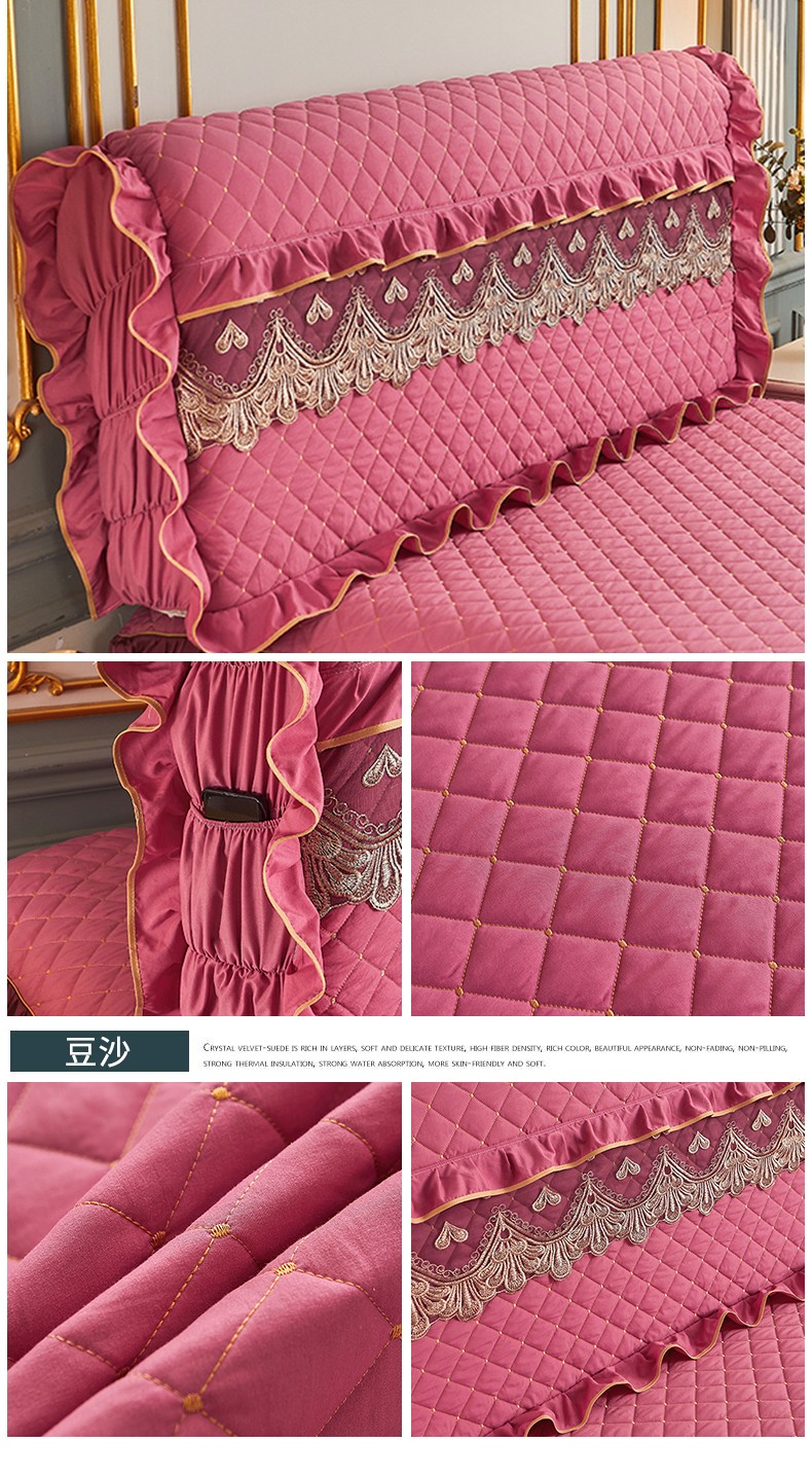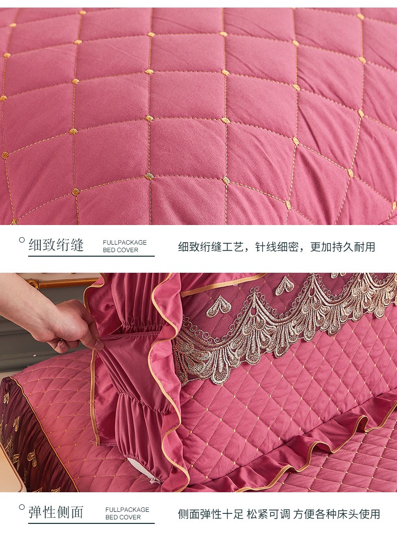 (总)屹成家纺2025新款水晶绒夹棉绗缝蕾丝床裙三件套(塞纳河畔)床裙单件起售价不低于105元,大红,豆沙,翡翠绿,粉玉,橄榄绿,蔚蓝,银灰