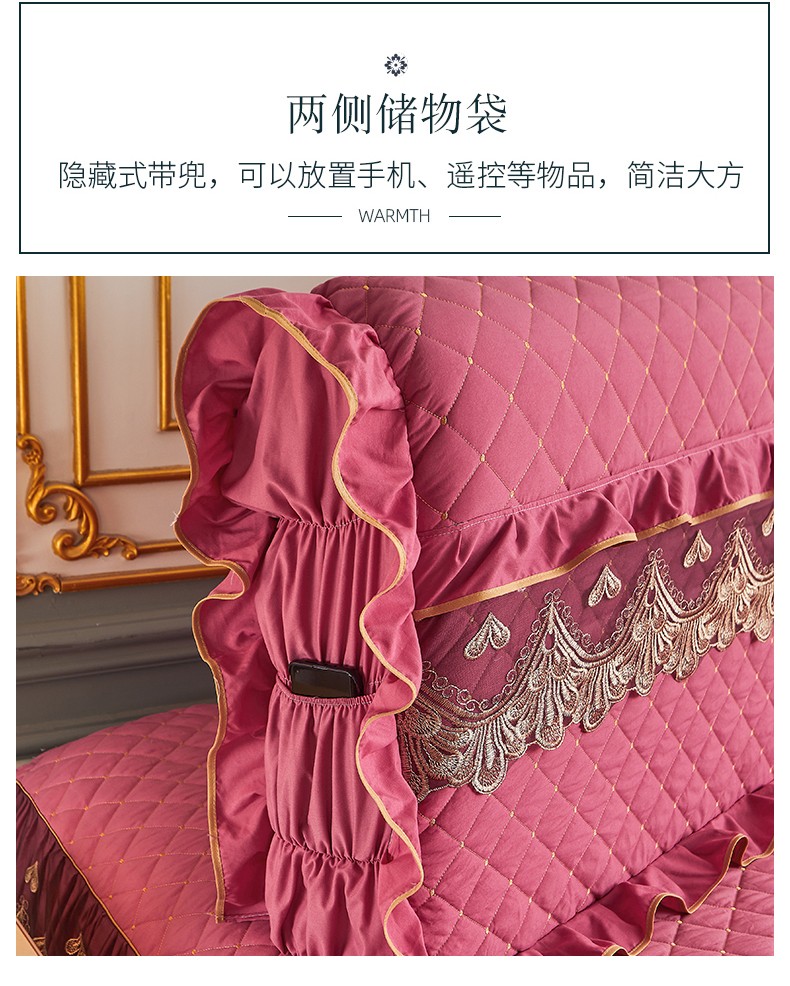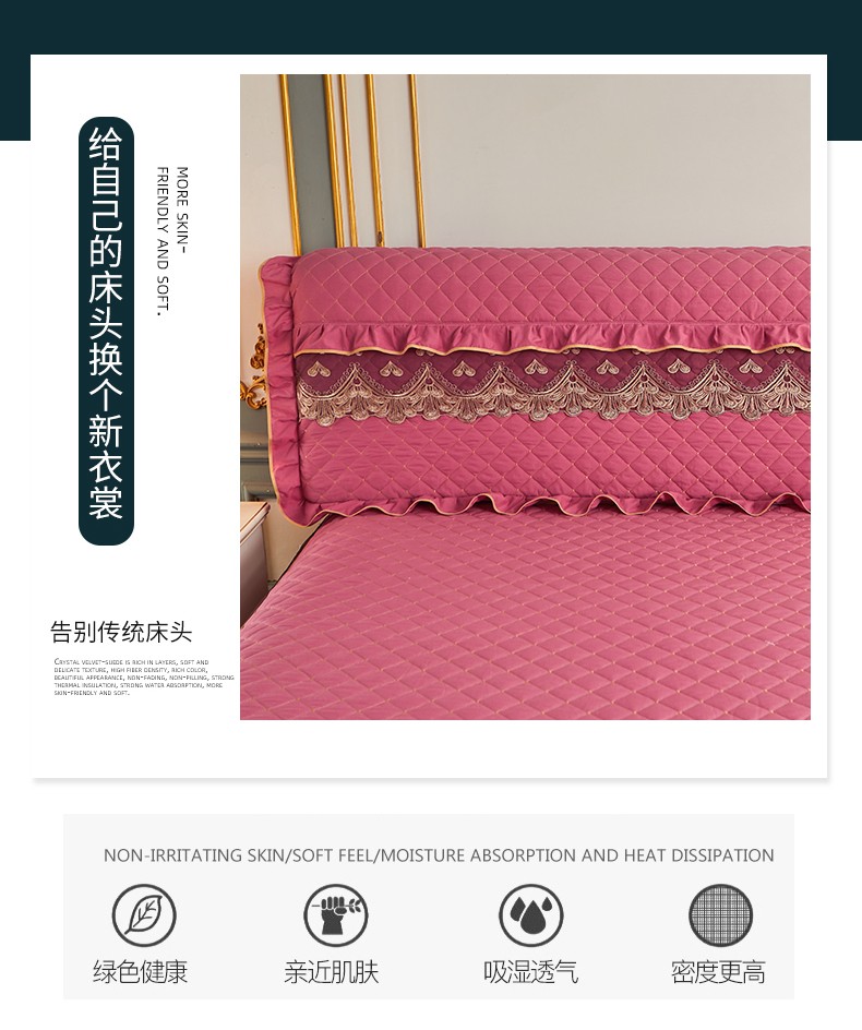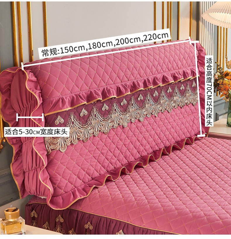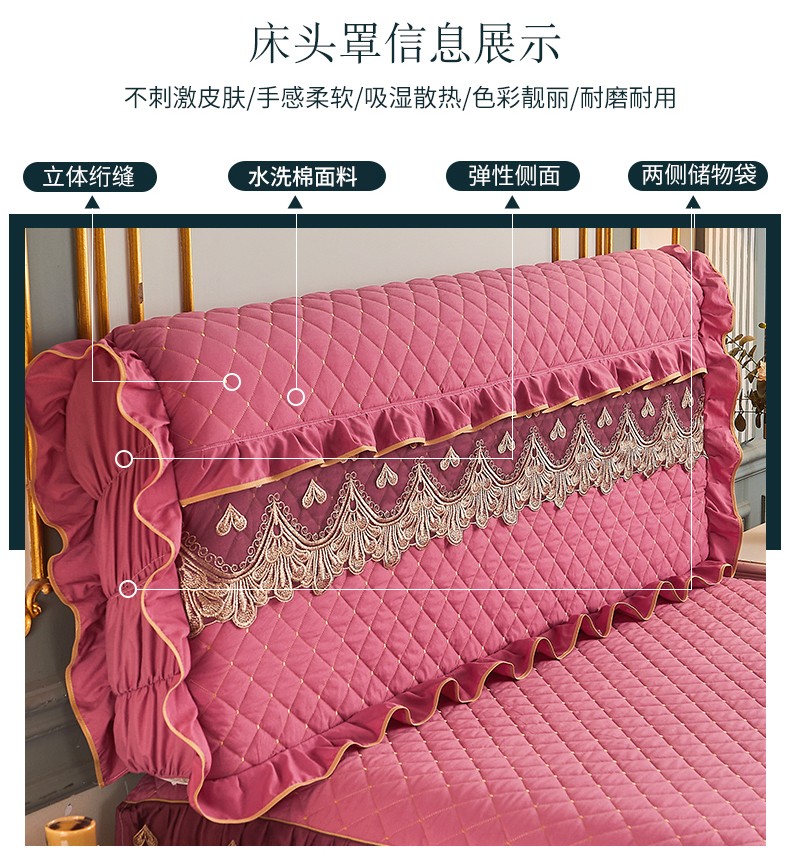 屹成 2024新款水洗棉蕾丝四季款床笠床裙单品套件-床头罩 豆沙