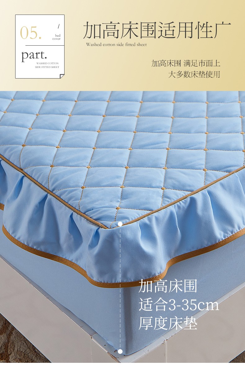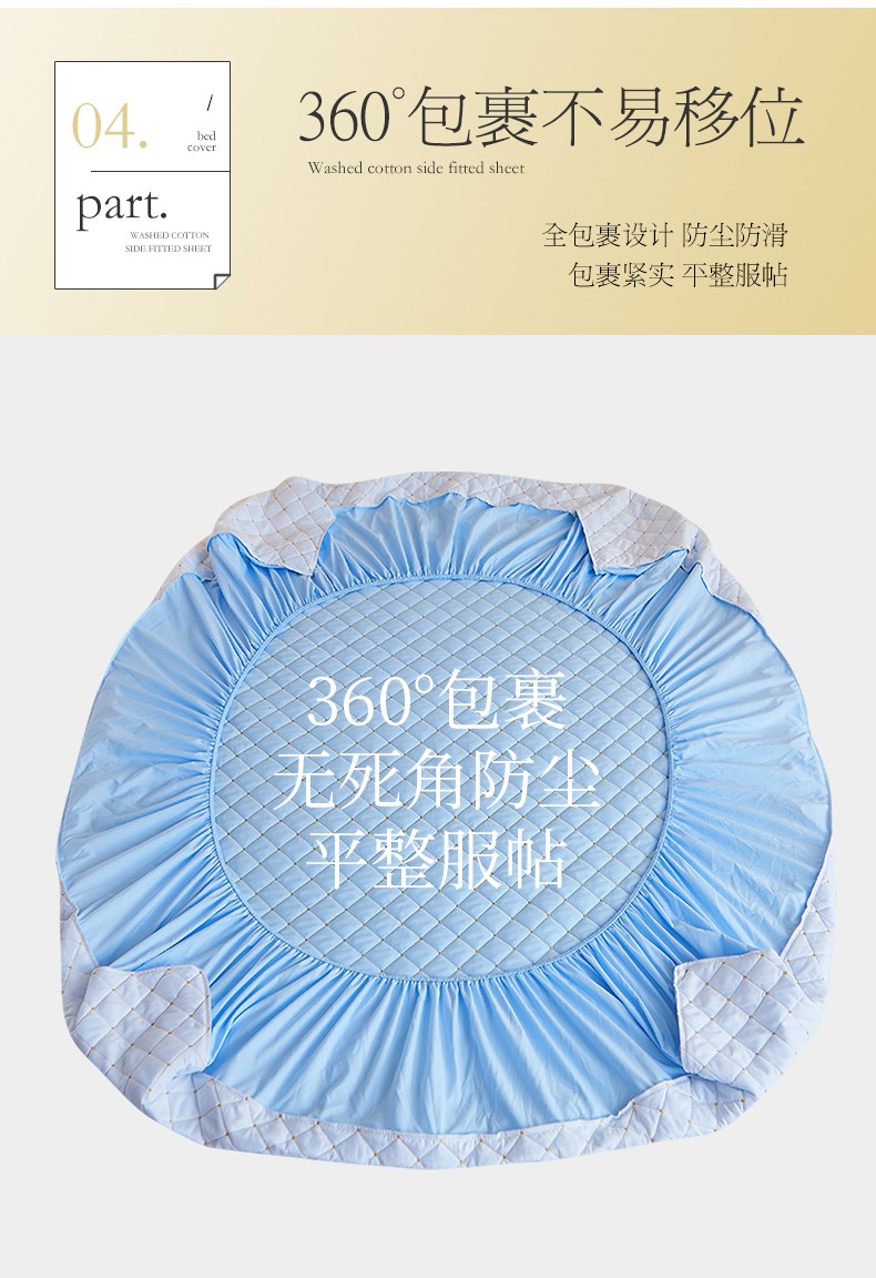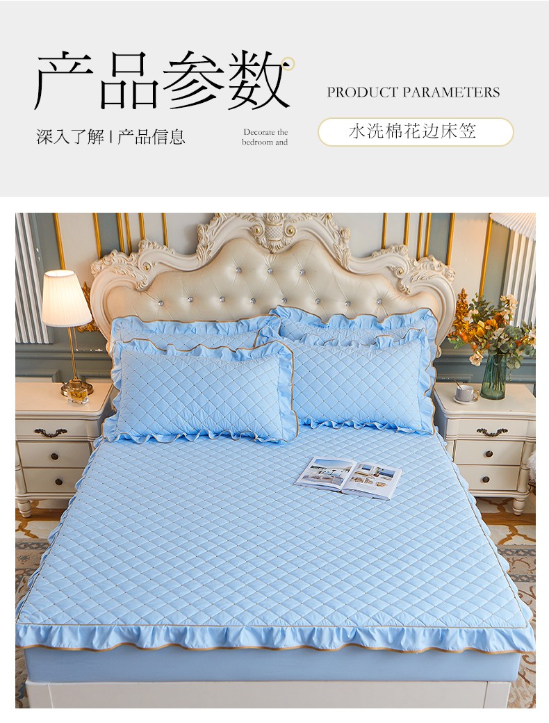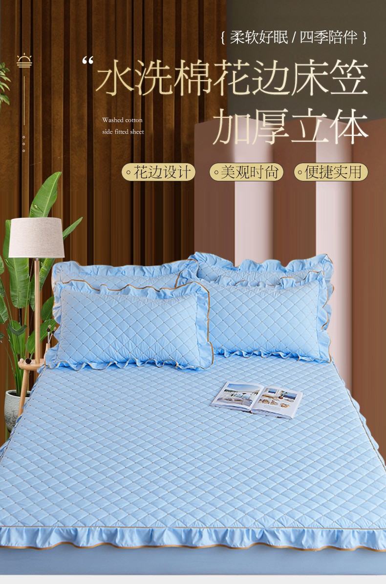 屹成 2024新款水洗棉蕾丝四季款床笠床裙单品套件-床笠三件套 天蓝