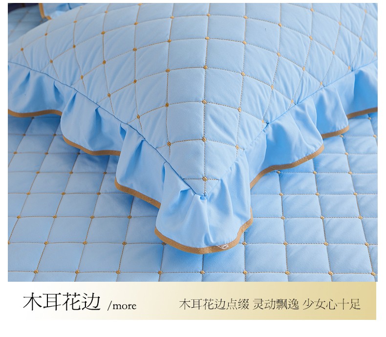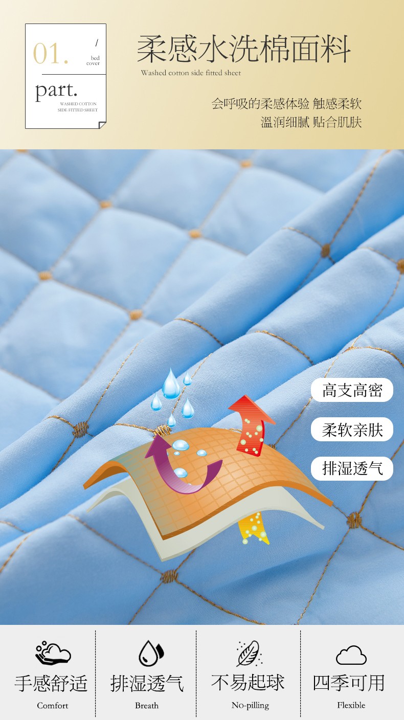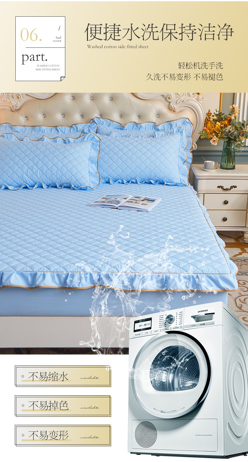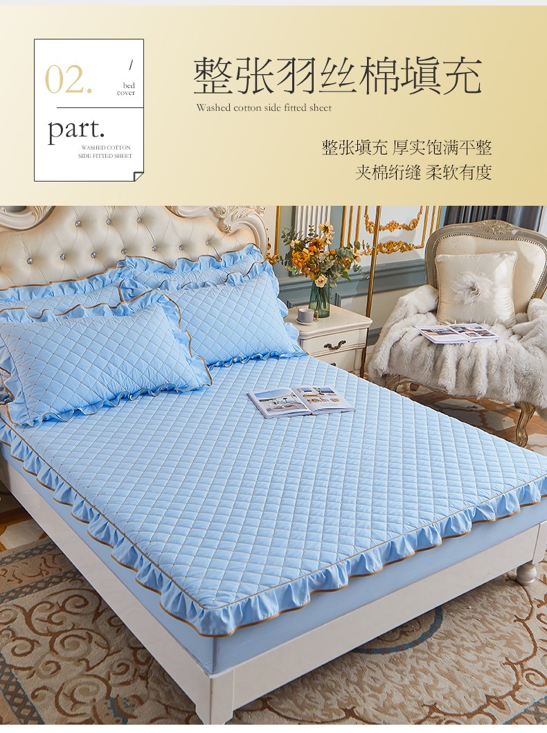 屹成 2024新款水洗棉蕾丝四季款床笠床裙单品套件-床笠三件套 天蓝