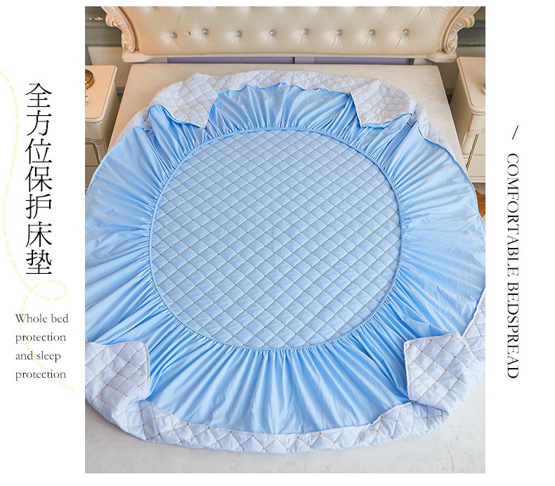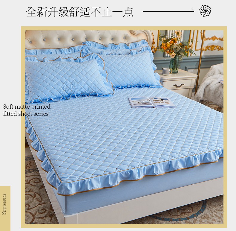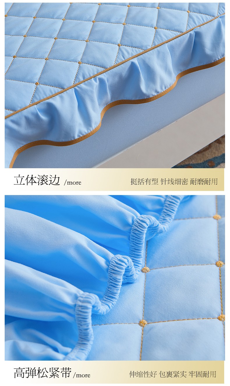 (总)屹成家纺2025新款水晶绒夹棉绗缝蕾丝床裙三件套(塞纳河畔)床裙单件起售价不低于105元,大红,豆沙,翡翠绿,粉玉,橄榄绿,蔚蓝,银灰