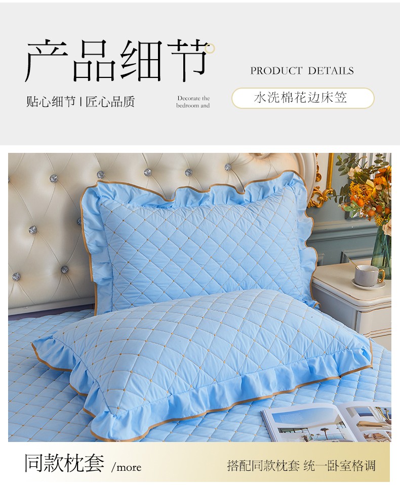 商品名称:屹成 2024新款水洗棉蕾丝四季款床笠床裙单品套件-床笠三件套 天蓝