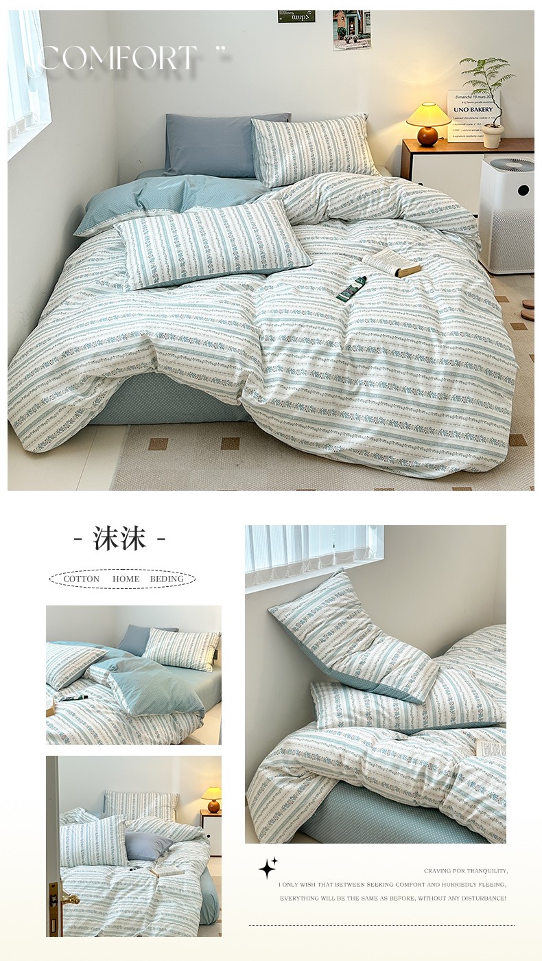 (总)捌月 2023新款13372全棉四件套竖纹印花系列,草莓园,兔小姐,小兰花,小甜心