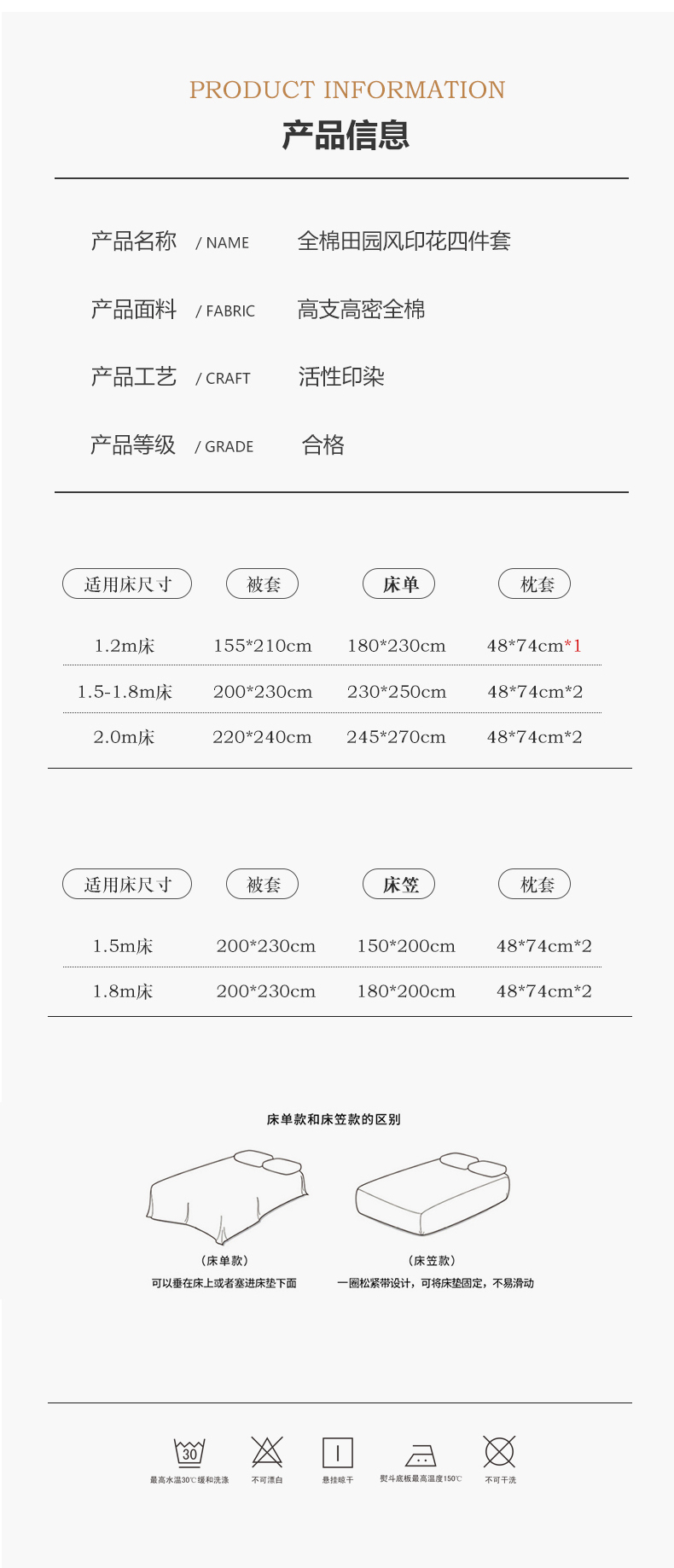 商品名称:捌月新款13372全棉田园风印花四件套小红书同款四件套直播新品 沫沫