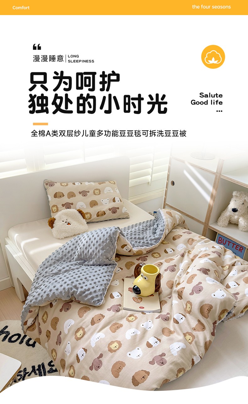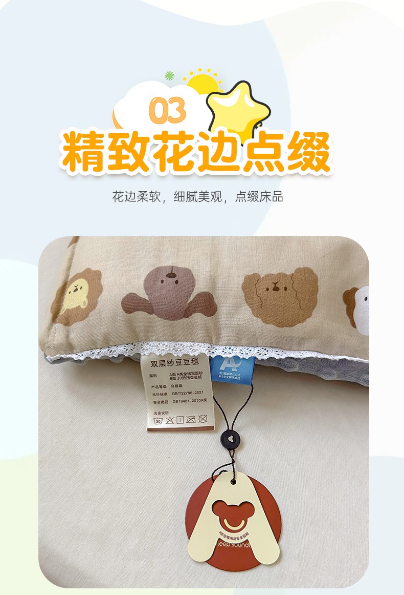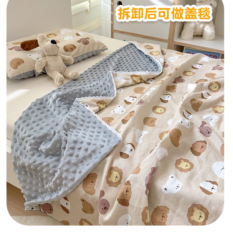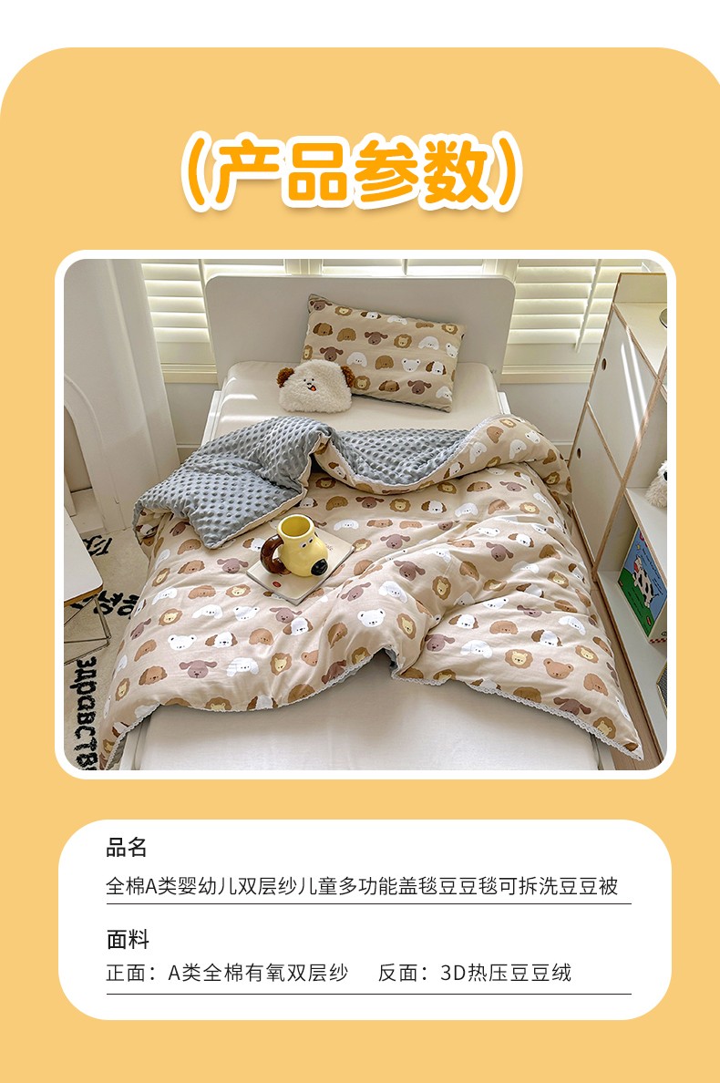 商品名称:希诺 2023新款全棉A类婴幼儿双层纱儿童多功能盖毯豆豆毯可拆洗豆豆被 狮子小熊