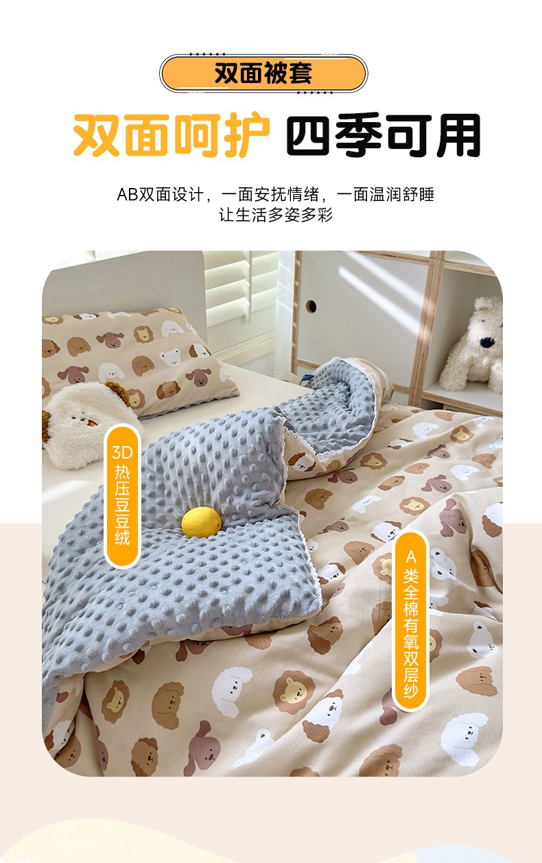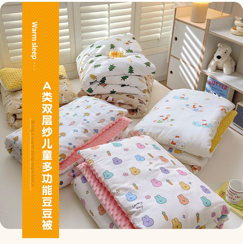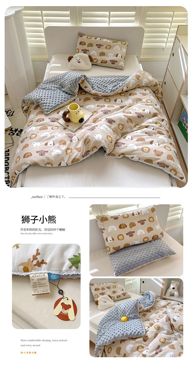 商品名称:希诺 2023新款全棉A类婴幼儿双层纱儿童多功能盖毯豆豆毯可拆洗豆豆被 狮子小熊