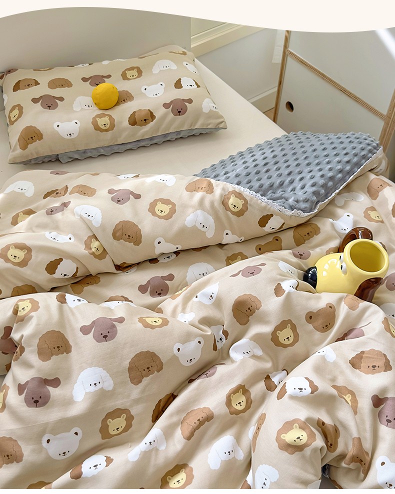 希诺 2023新款全棉A类婴幼儿双层纱儿童多功能盖毯豆豆毯可拆洗豆豆被 狮子小熊